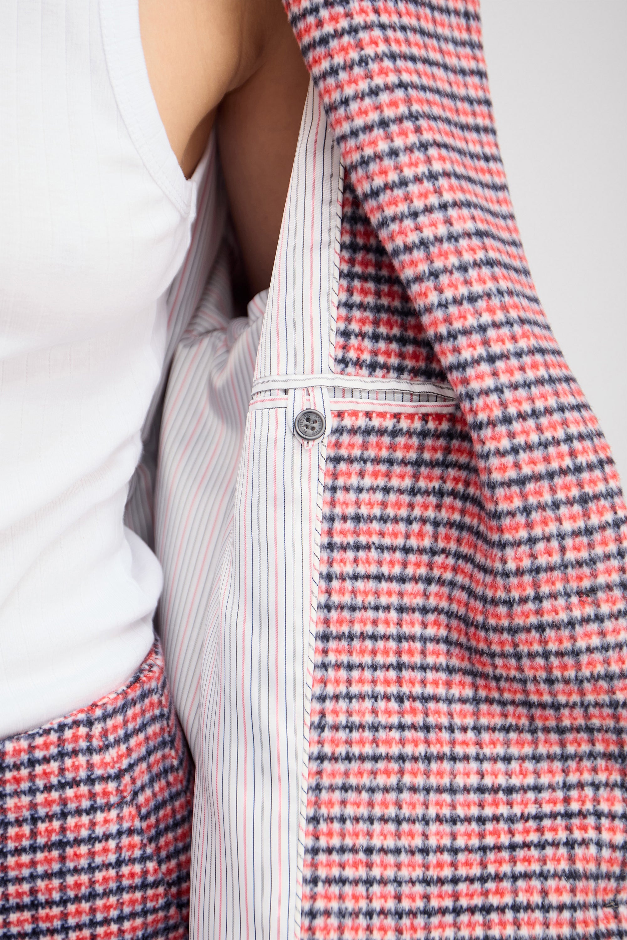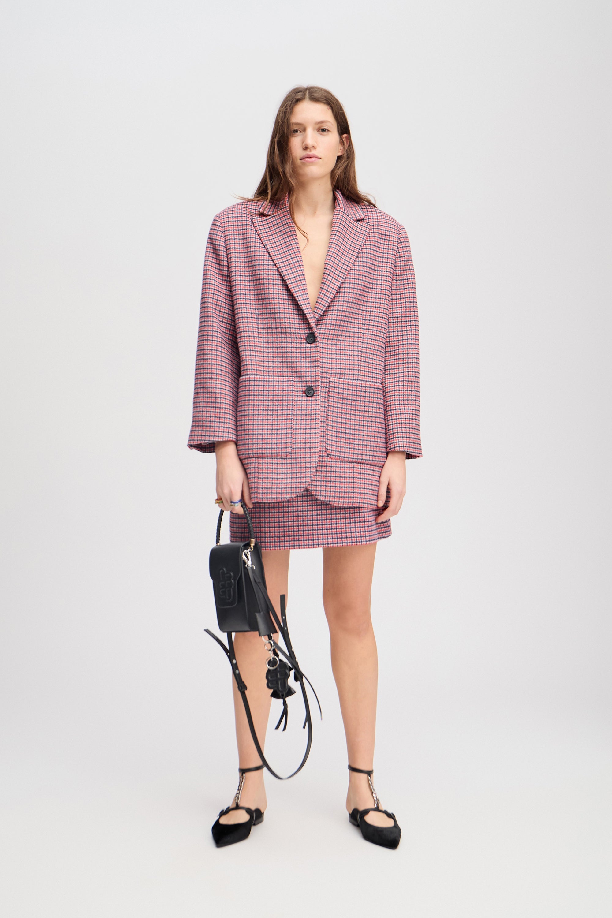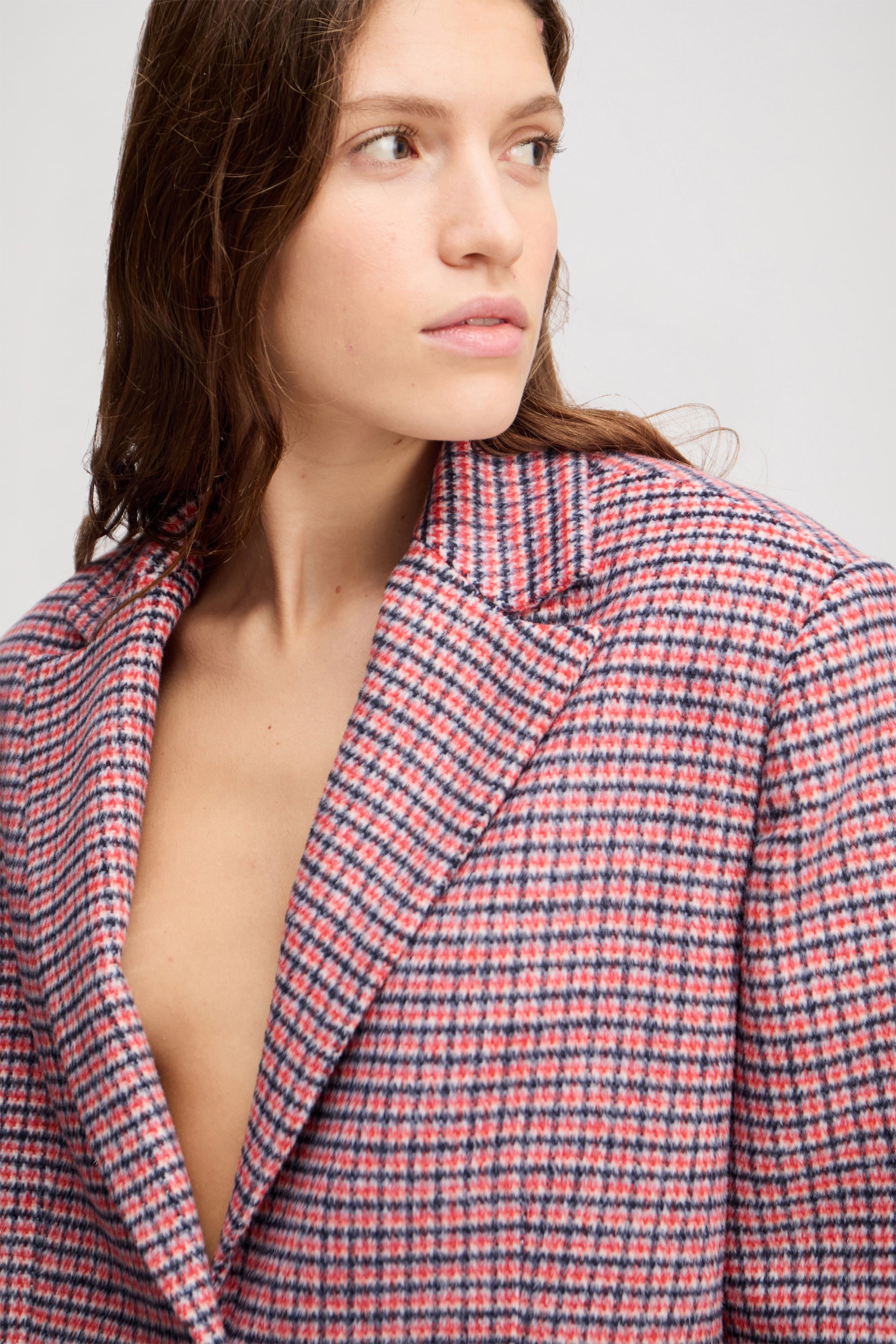Elegante oversized jas met prachtige ruiten en fijne zakken. Deze jas heeft lange mouwen met knopen en kan aan de voorkant worden gesloten met twee knopen.