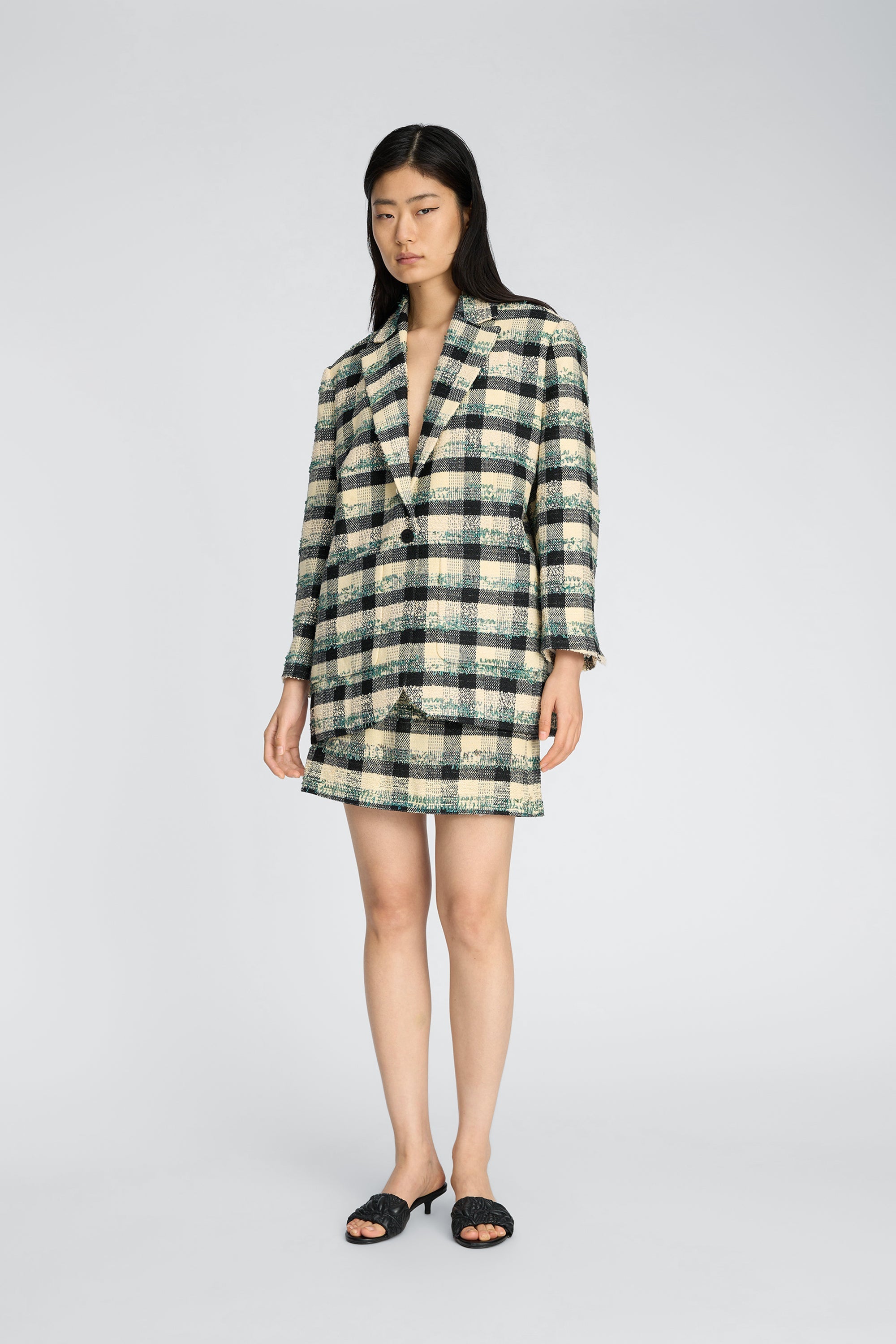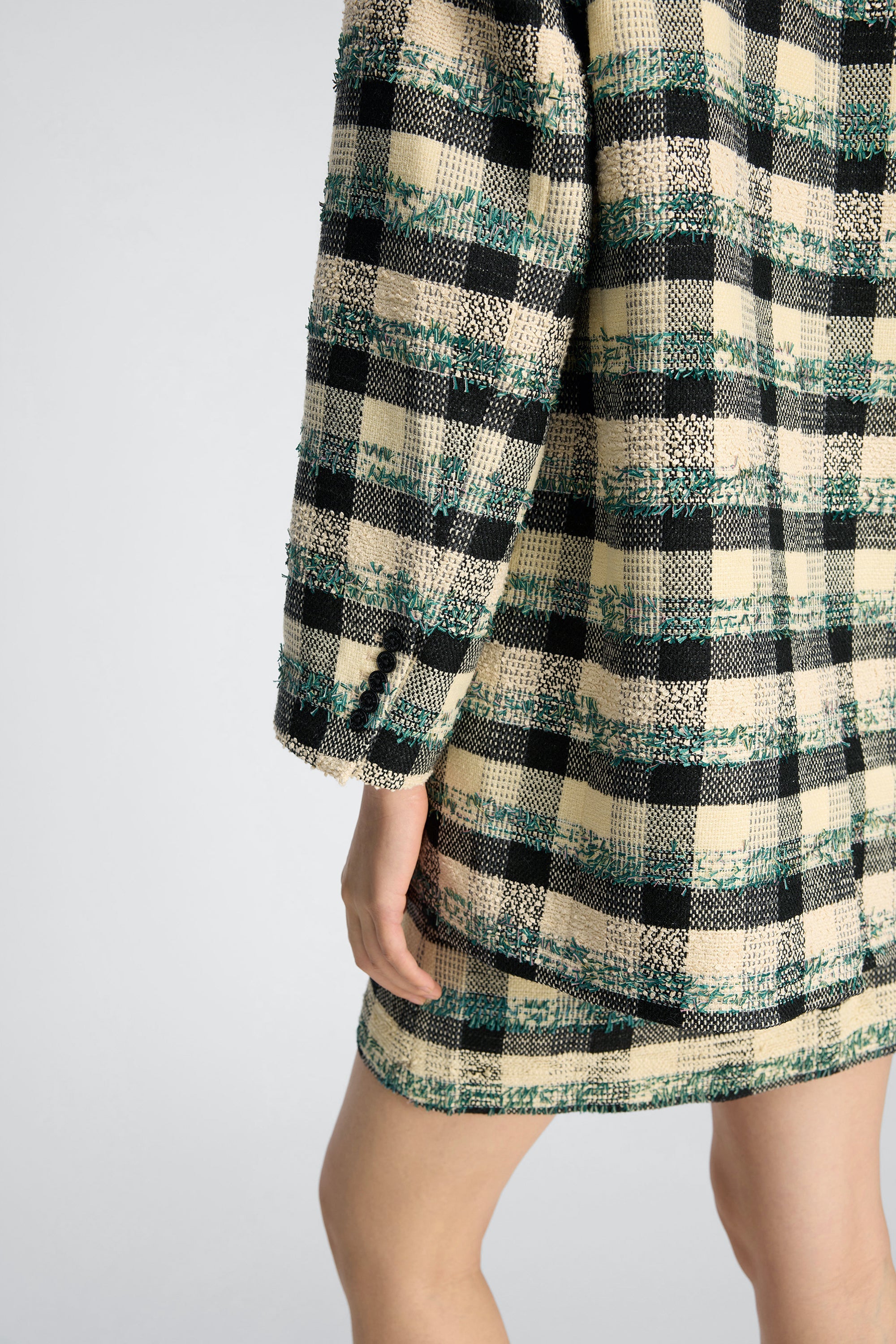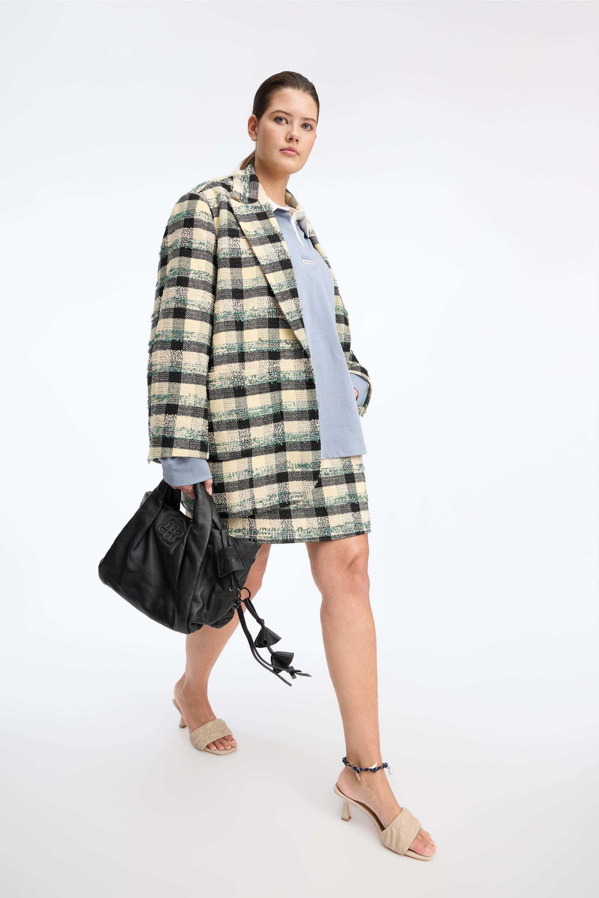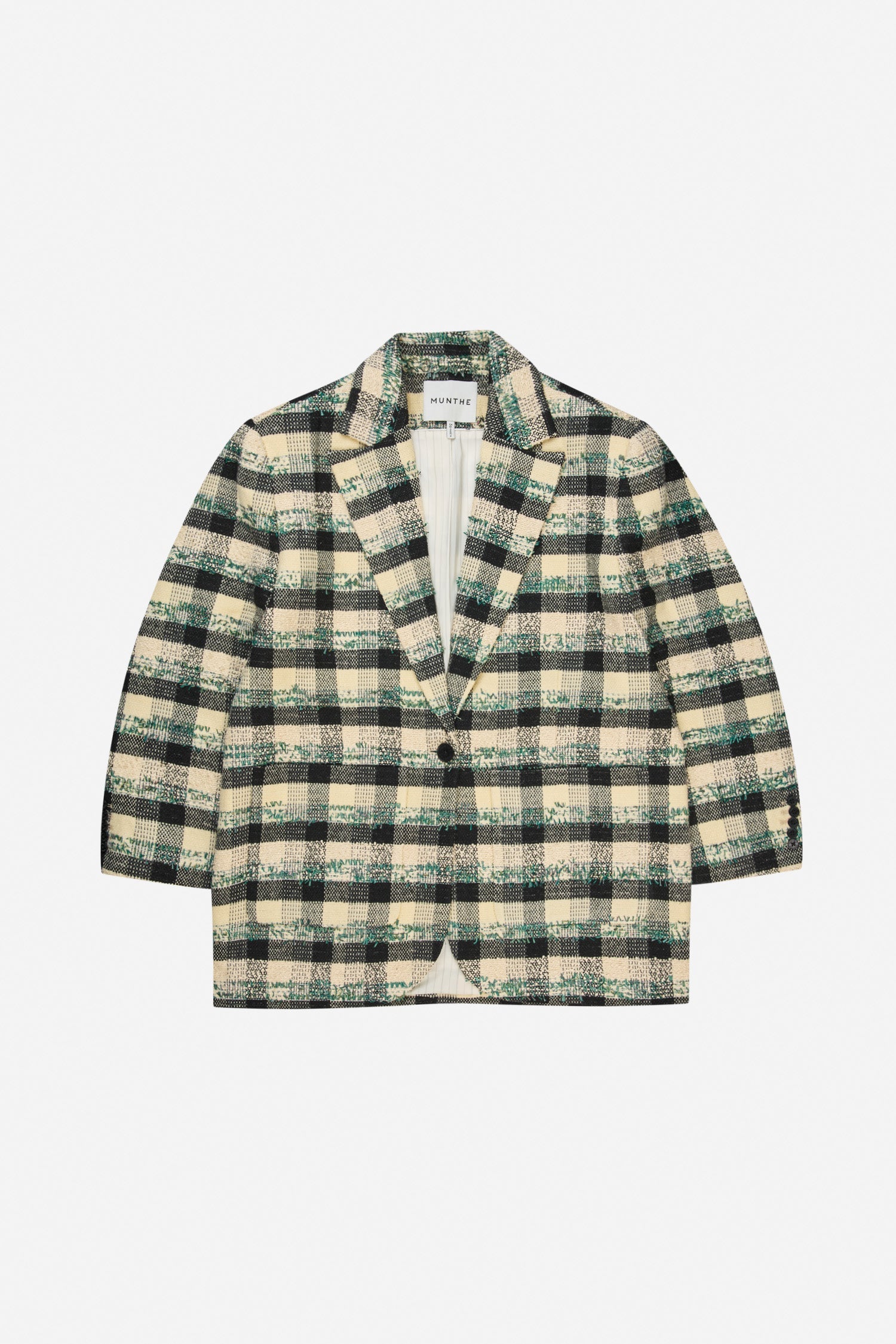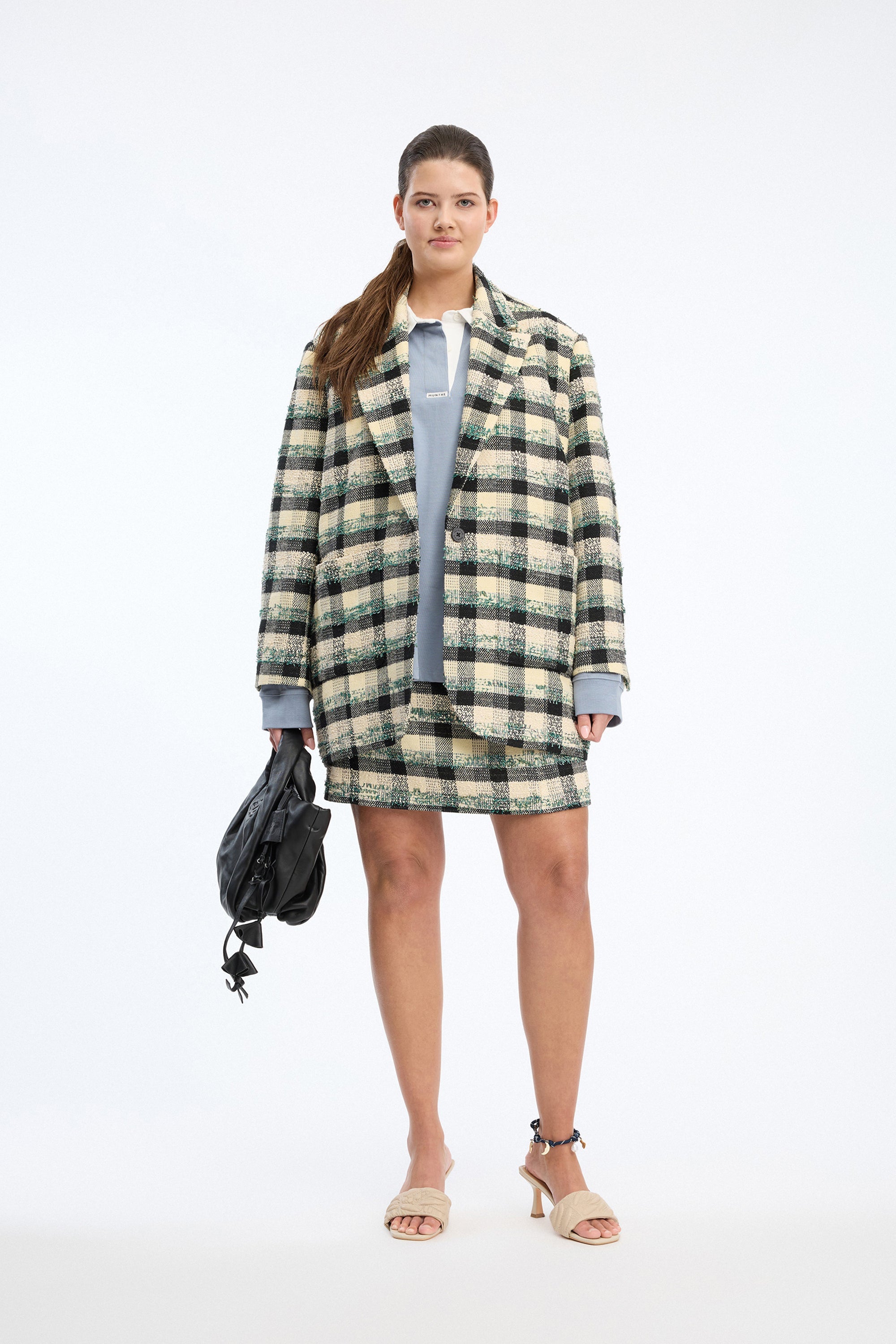 Dit colbert is gemaakt van een zachte geweven stof met een opvallend ruitpatroon. Het heeft een licht oversized silhouet, een knoopsluiting en twee steekzakken voor een ontspannen maar verzorgde uitstraling.