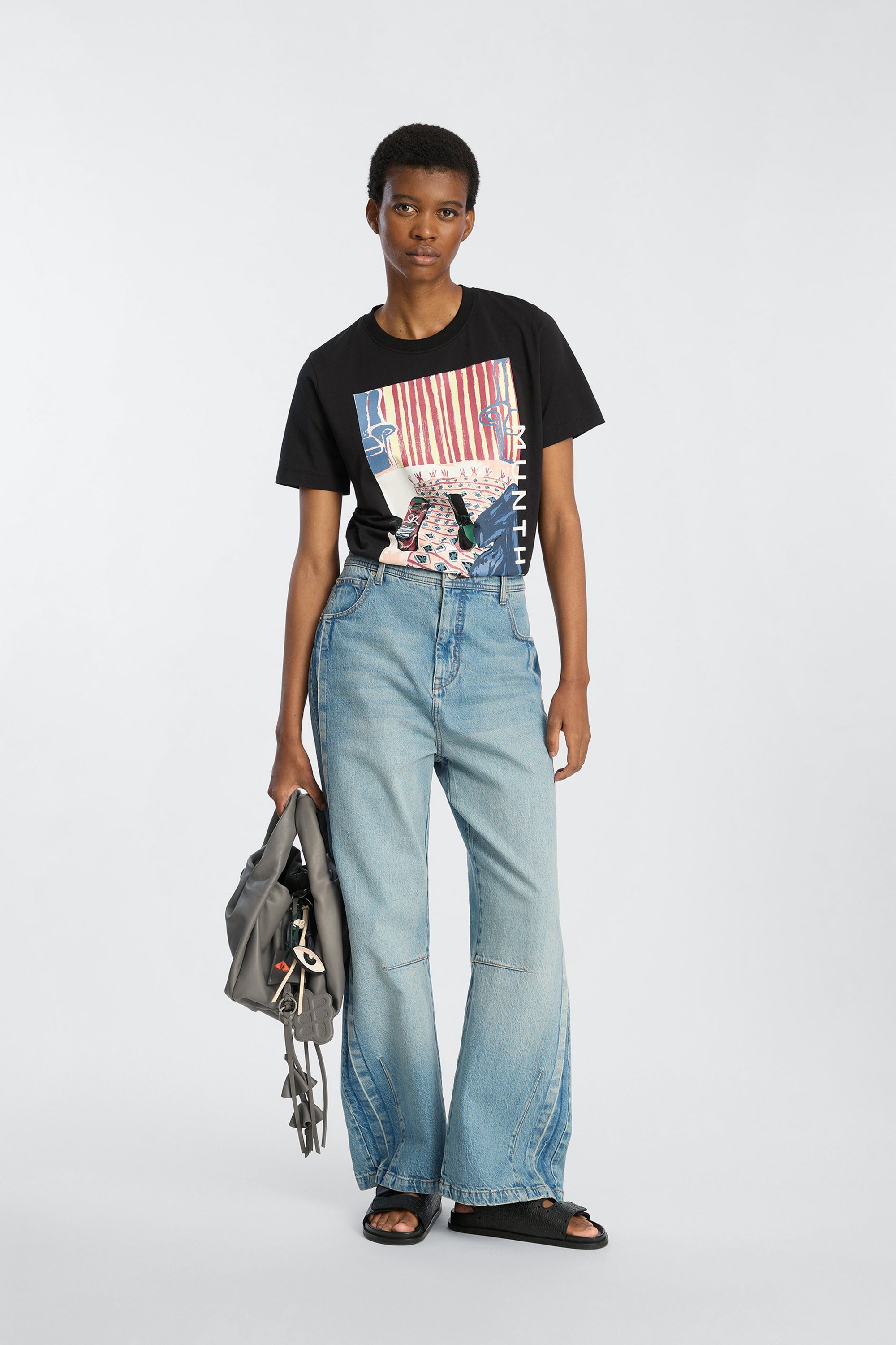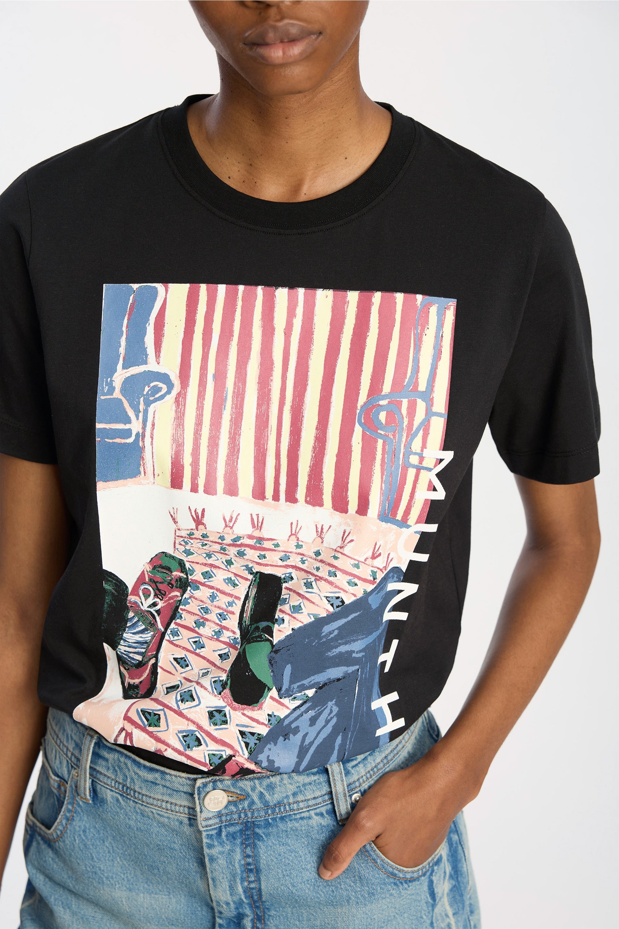 T-shirt met artistieke print. Het T-shirt heeft een ronde hals, korte mouwen en een normale pasvorm.
