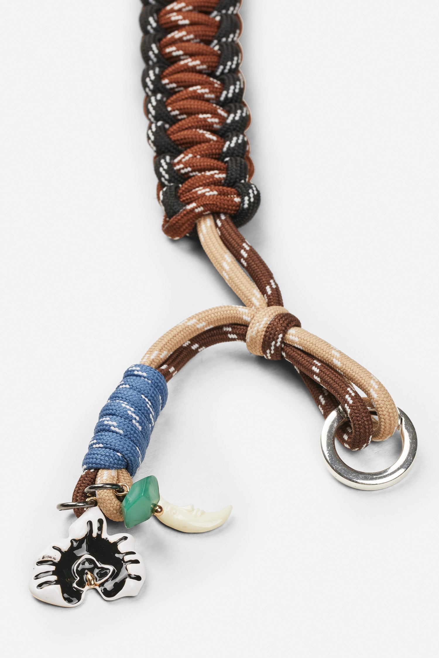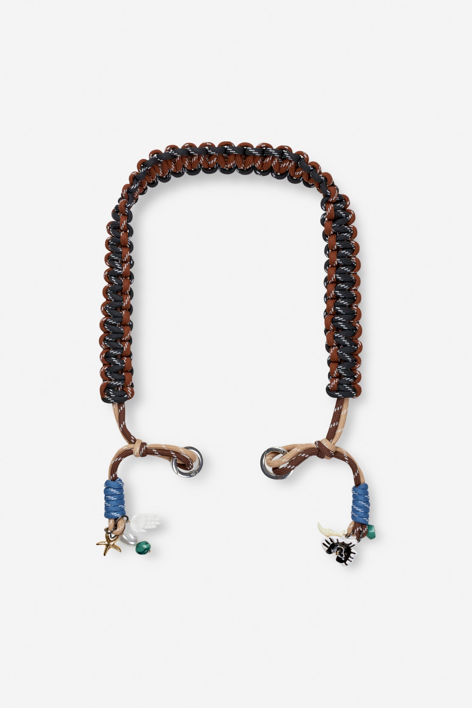 Afneembare tasband van gedraaid touwmateriaal met verfijnde details en bedeltjes.