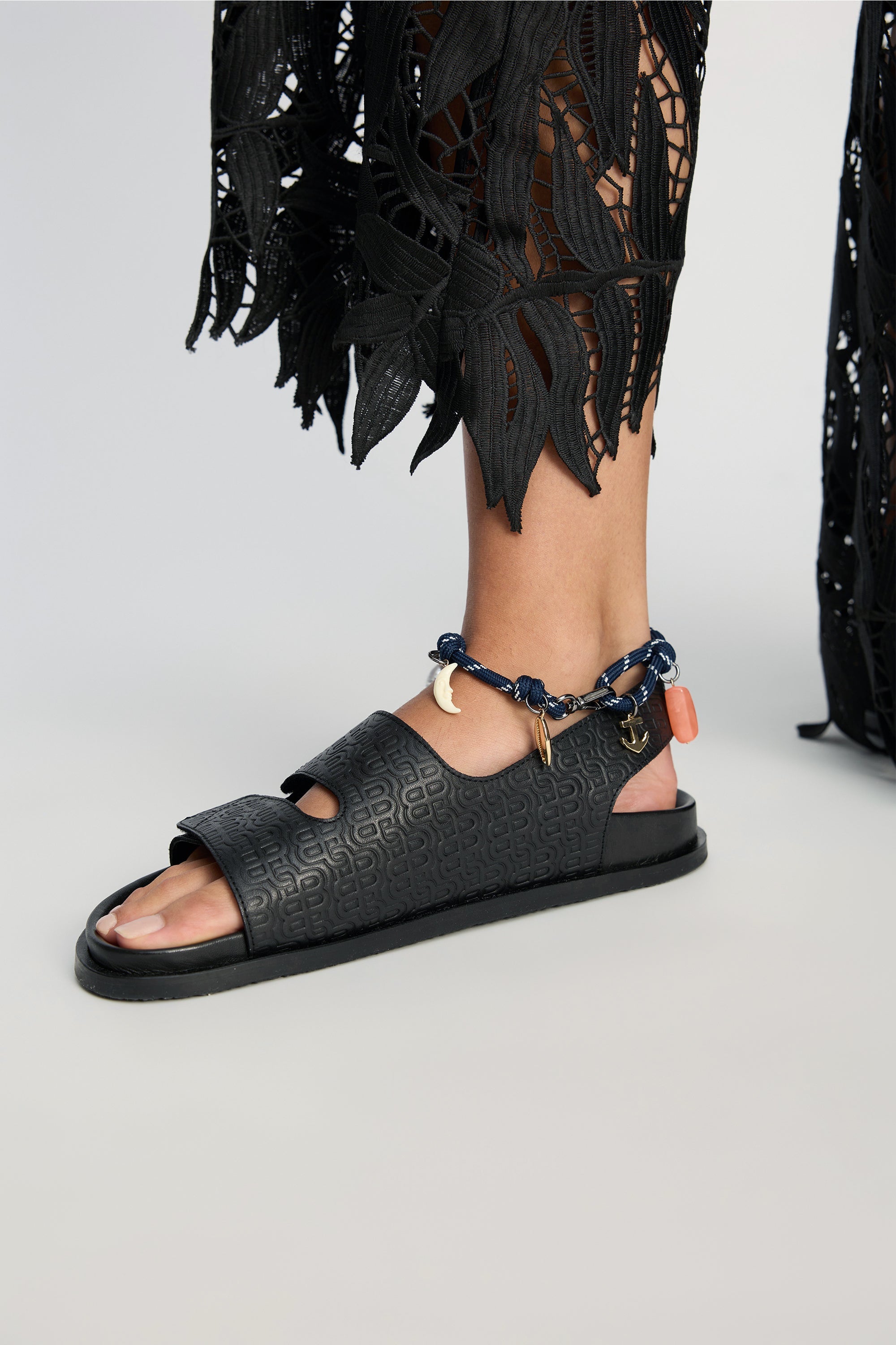 De BAYU enkelband is gemaakt van een zacht touwmateriaal en afgewerkt met bedeltjes, waaronder parels, stenen, een ankerbedeltje en een schelpenbedeltje.