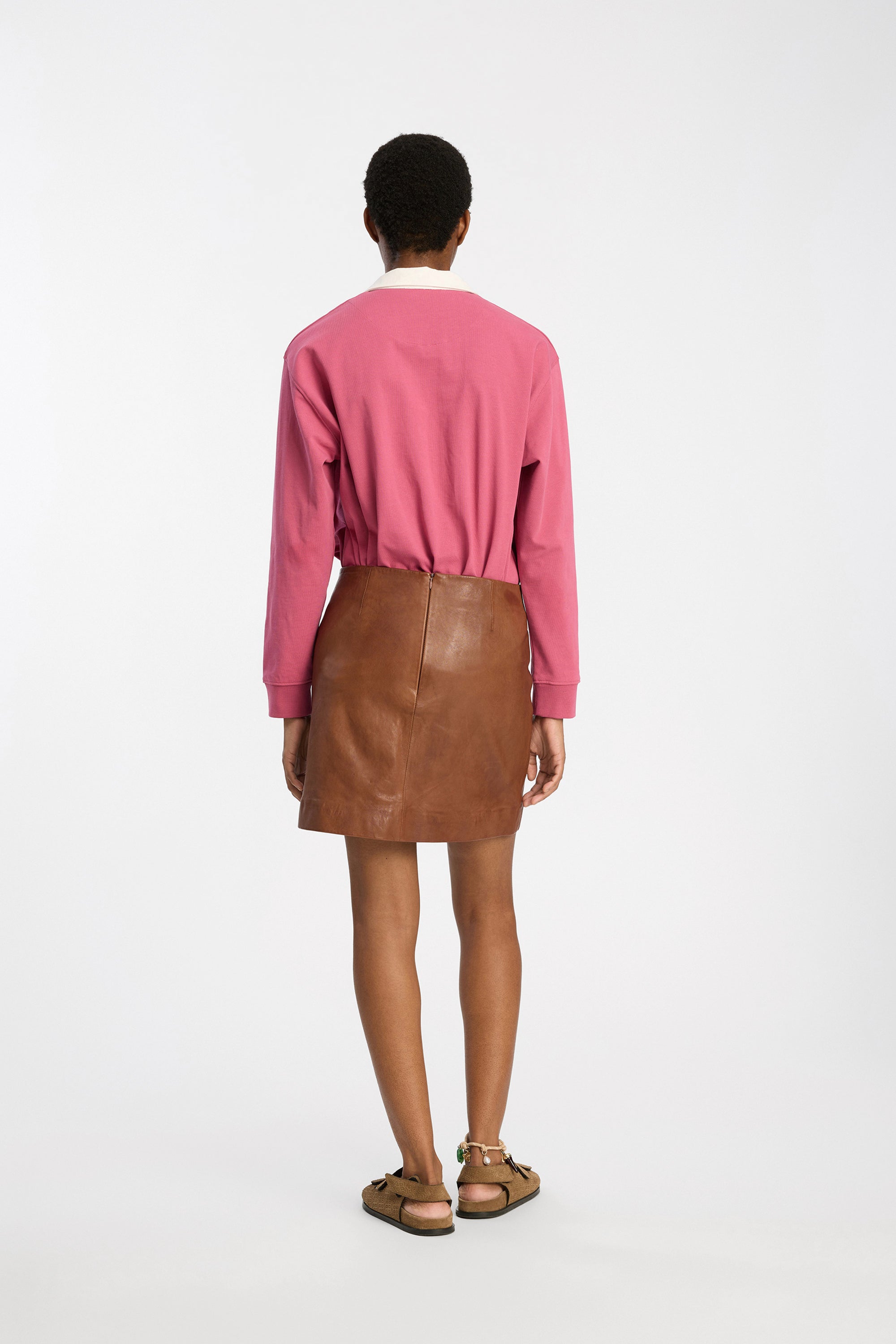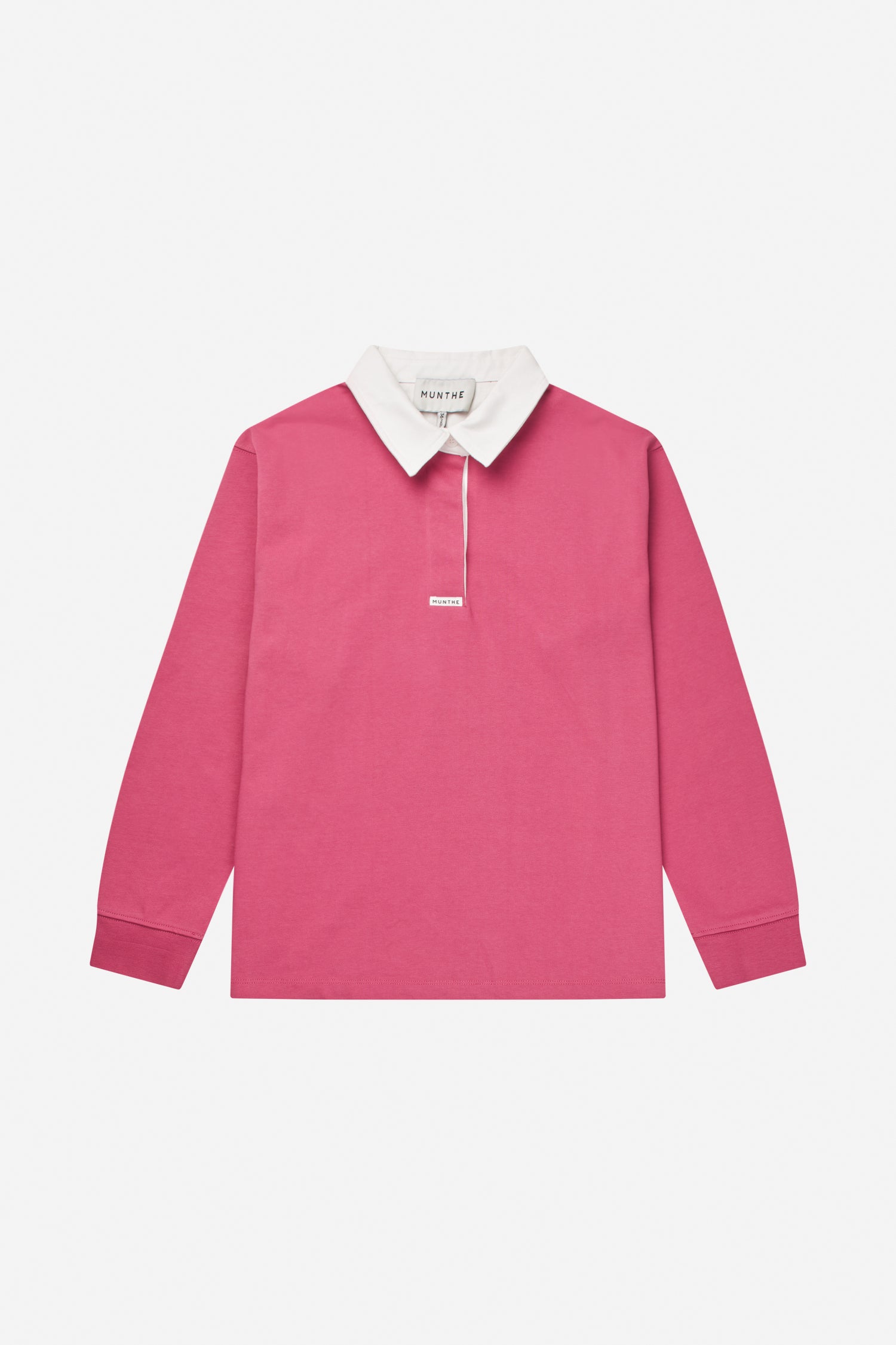 Dit poloshirt heeft een contrasterende witte kraag en lange mouwen, allemaal in een prachtige bessenkleur. Voeg een vleugje kleur toe aan je garderobe met dit opvallende stuk.