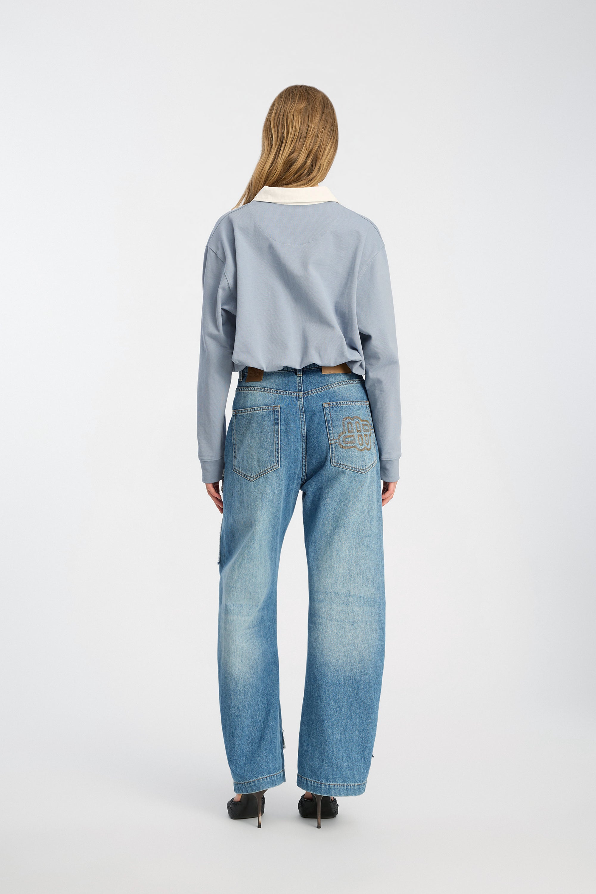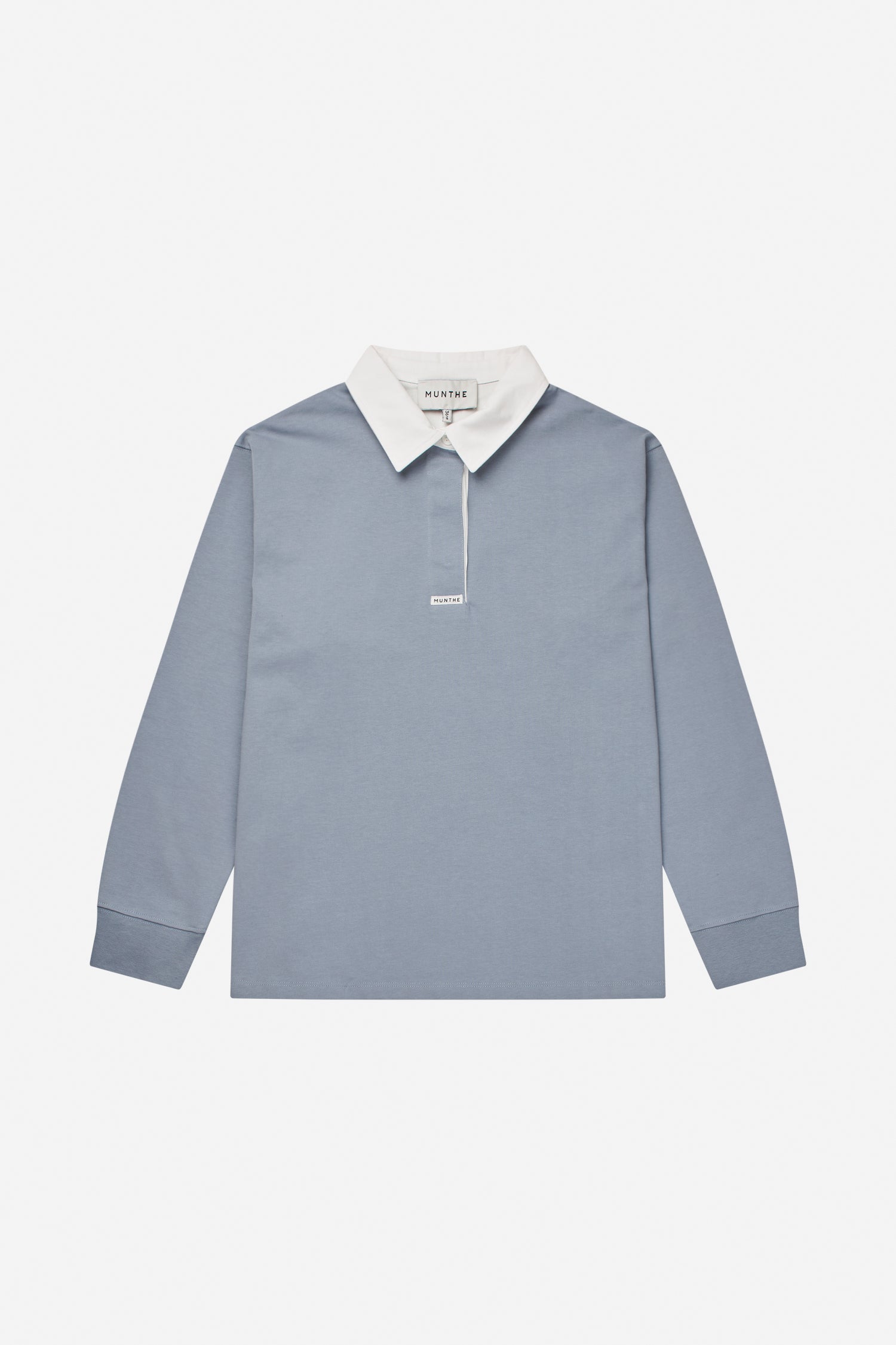 Dit poloshirt heeft een contrasterende witte kraag en lange mouwen, allemaal in een prachtige stofblauwe kleur. Een mooie basis om aan elke outfit toe te voegen.