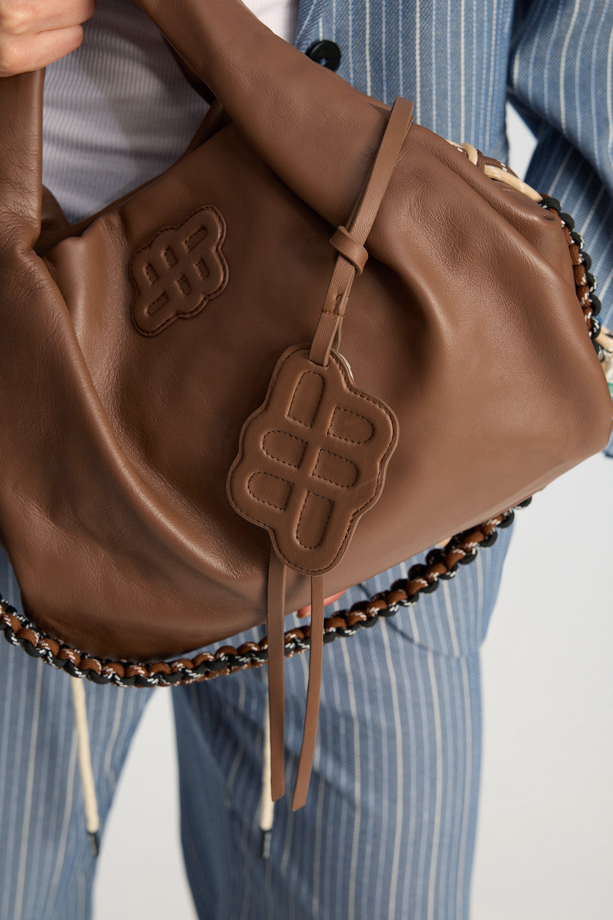 Deze tashanger is gemaakt van lamsleer en heeft een MUNTHE-logo en een smalle leren band.