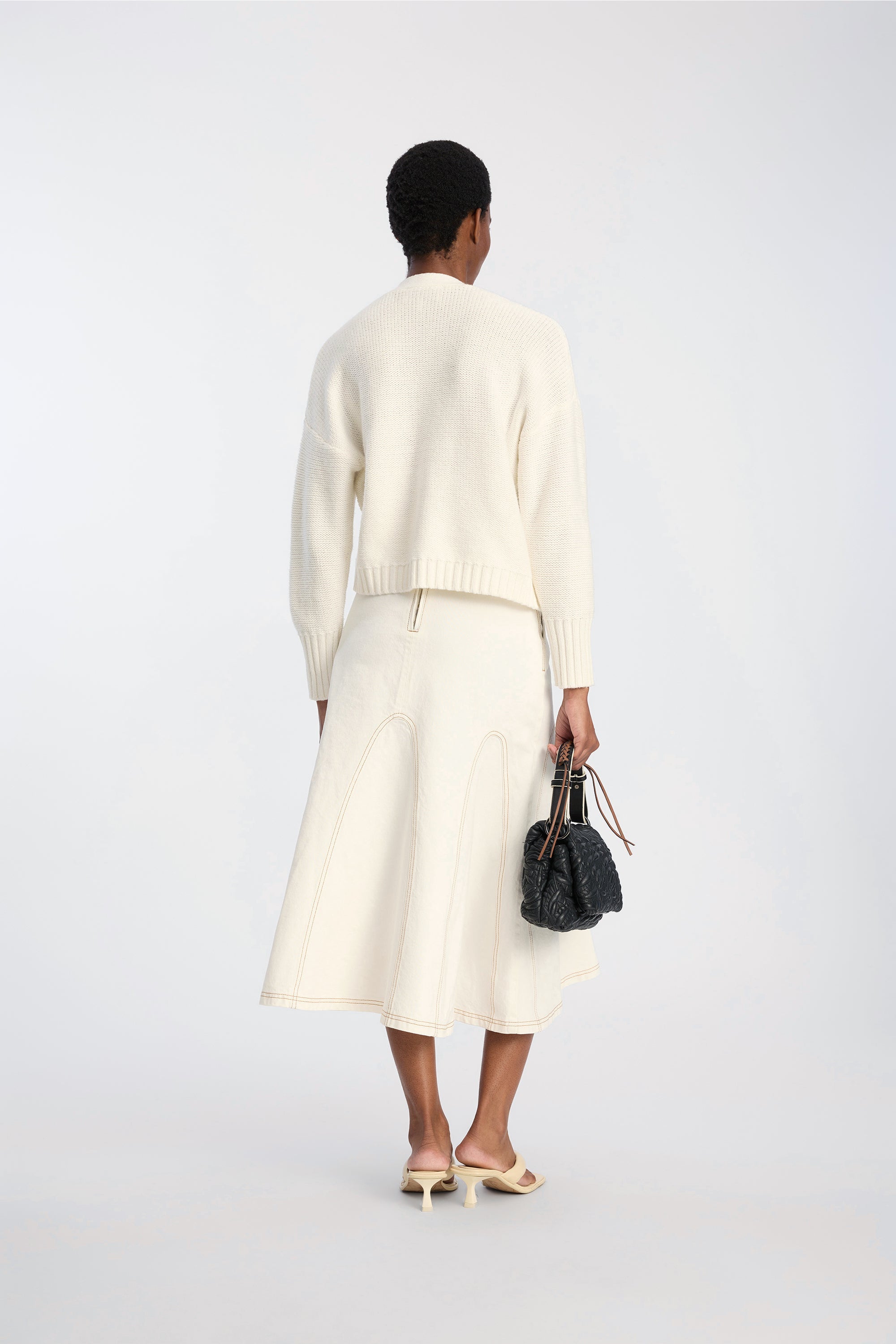 Het model is 176 cm lang en draagt maat 36.