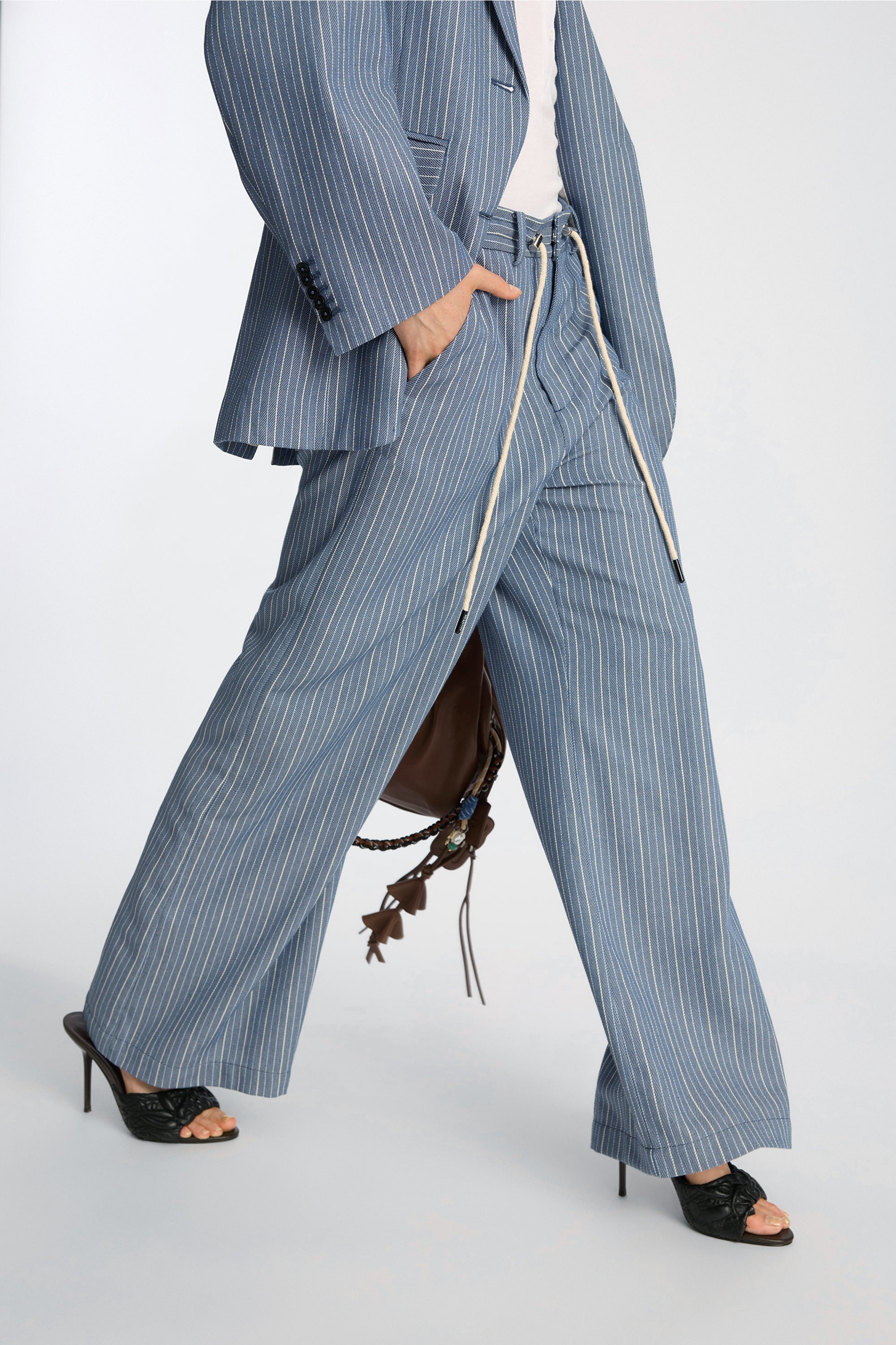 Broek met een brede pijpvorm, gestreepte stof en een verstelbaar trekkoord in de taille voor extra comfort en flexibiliteit. Een veelzijdig model dat de perfecte balans biedt tussen ontspannen en verzorgd.