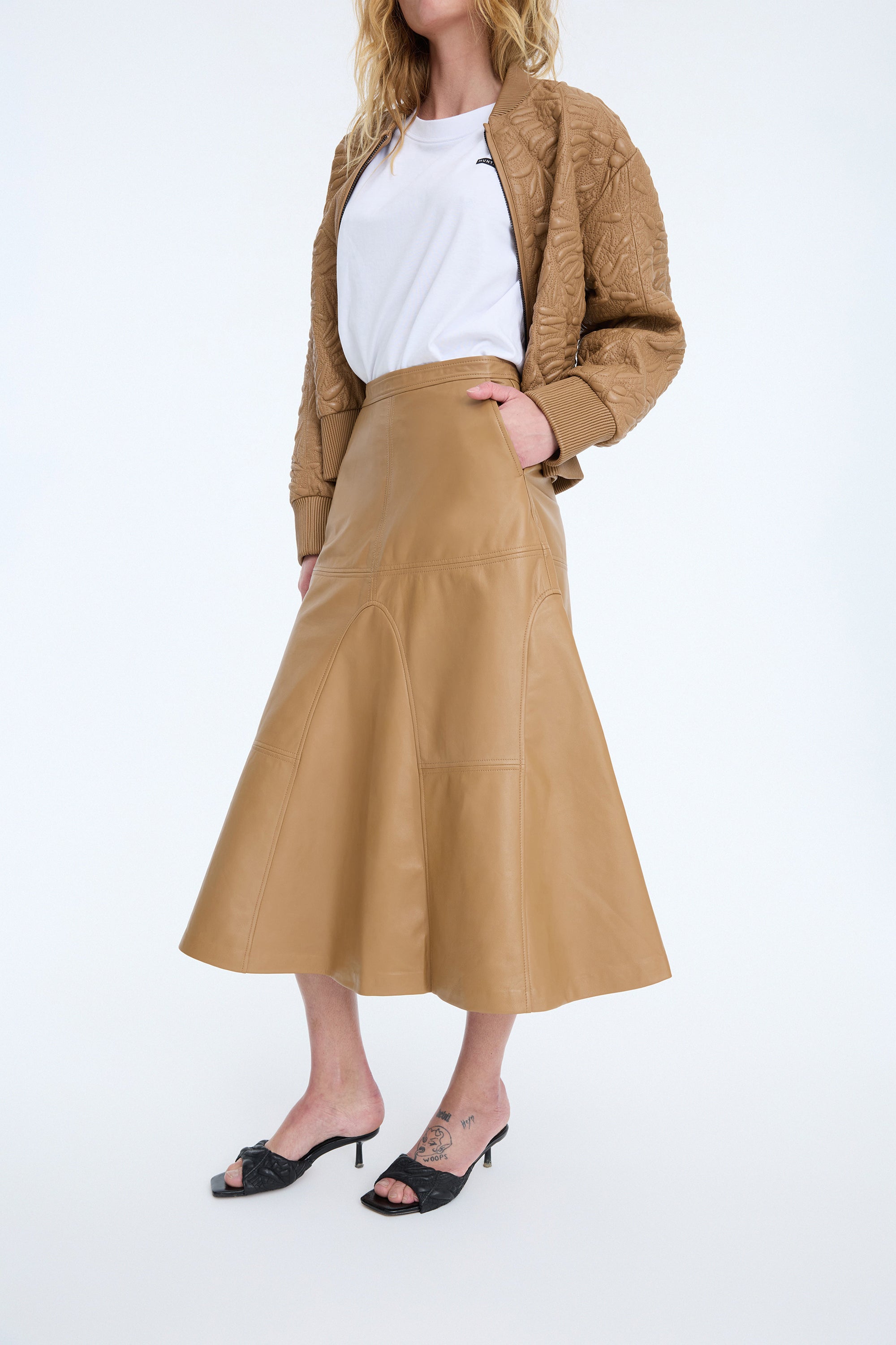De BRAYLIN-rok is en heeft een flatterende midilengte met een uitlopende zoom. Ontworpen met gestructureerde naden en een rechte pasvorm, biedt dit item tijdloze veelzijdigheid.