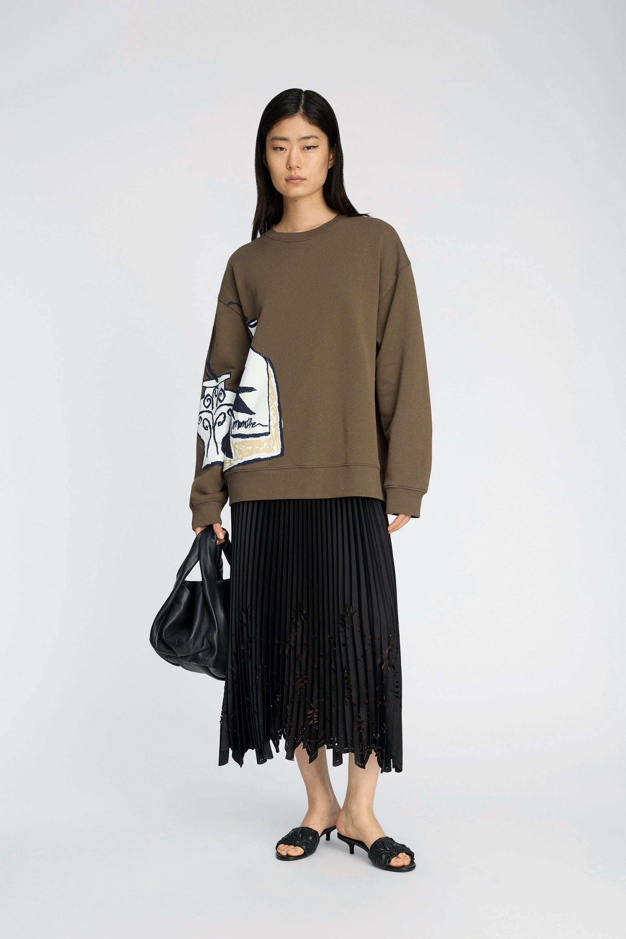 Plissérok met prachtige laser-cut details. Ontworpen met een elastische tailleband, versierd met een discreet MUNTHE-logo.
