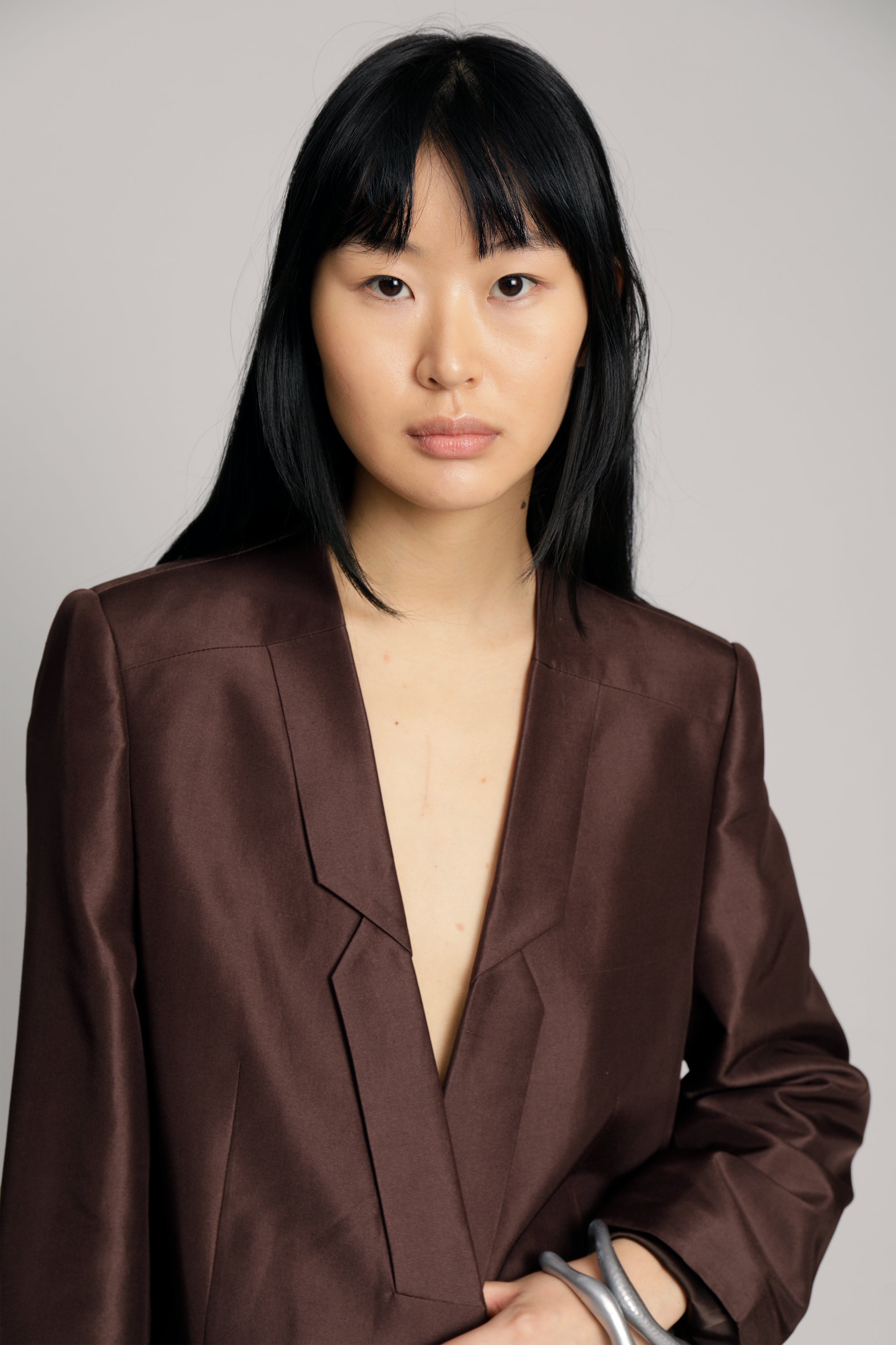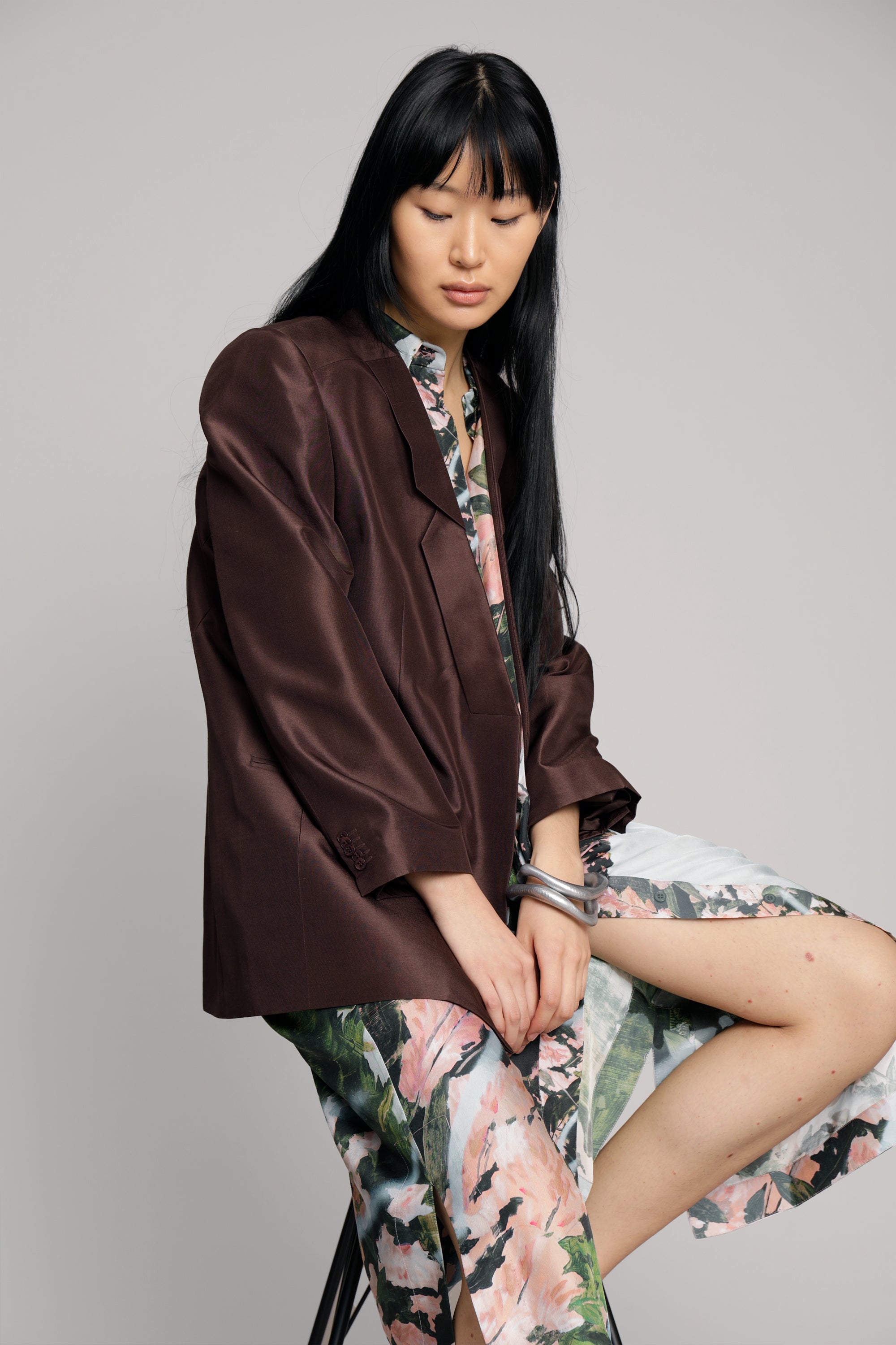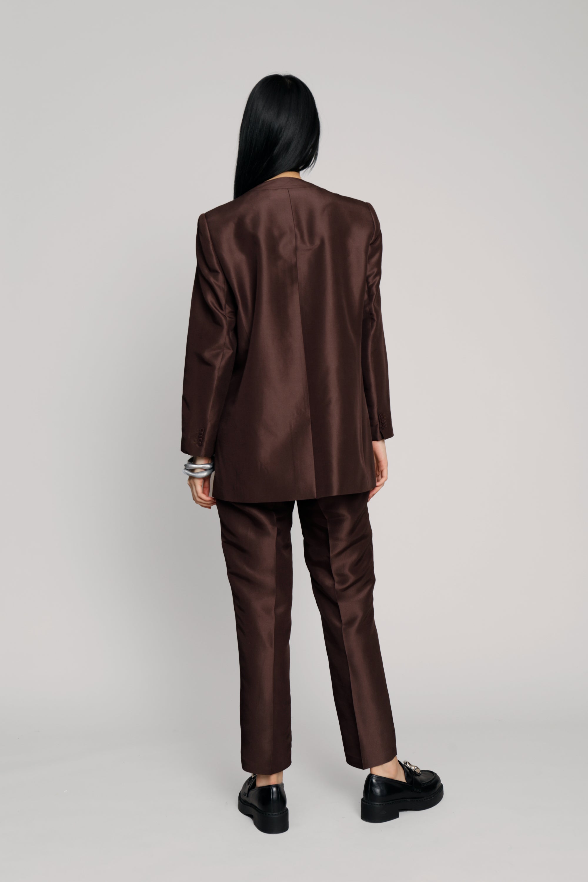 Blazer van 100% zijde, in een normale pasvorm met lange mouwen. De blazer heeft zakken en een prachtig gedetailleerde revers. Verkrijgbaar in de kleur choco.
