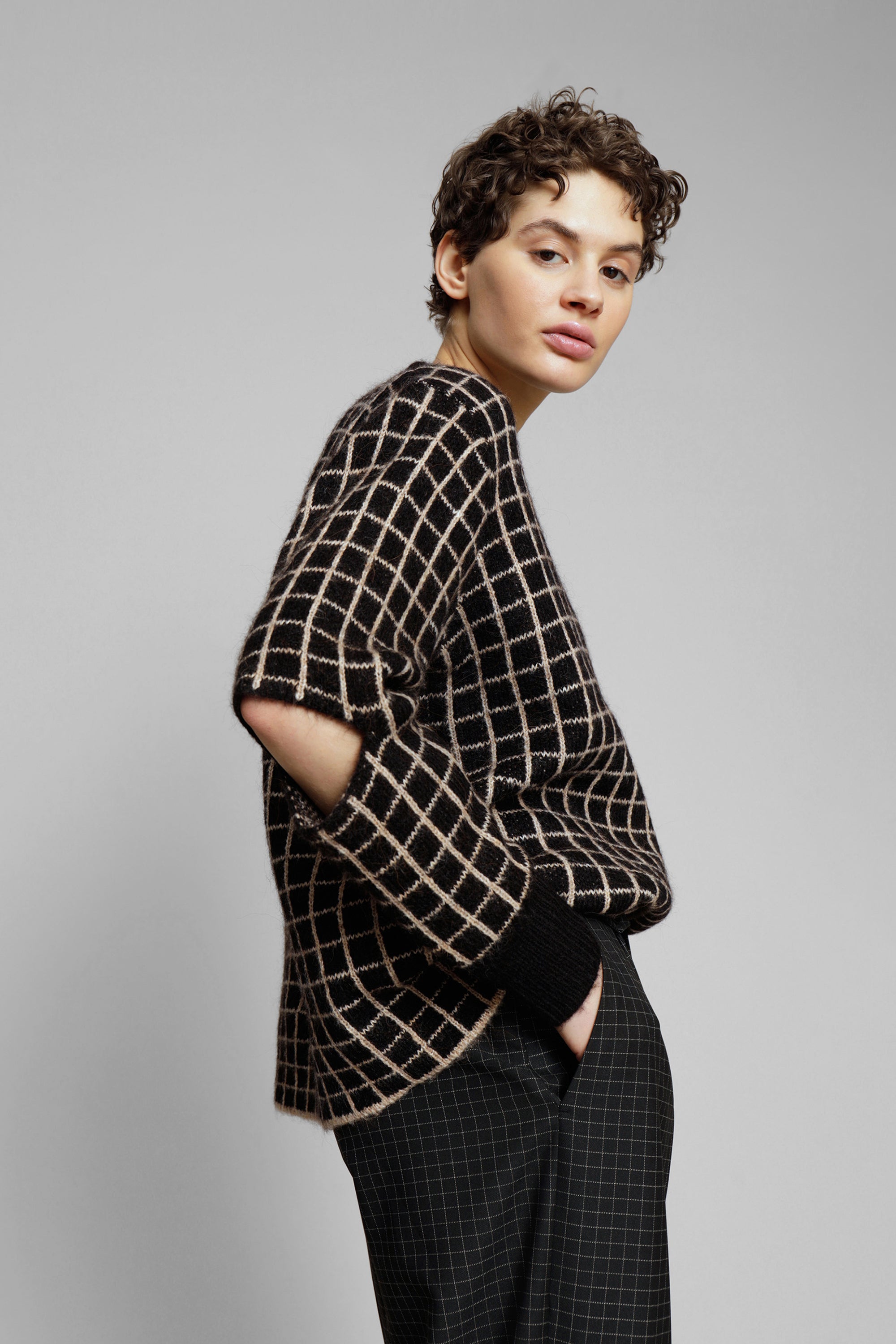 Prachtig breisel met een elegant uitgesneden detail op de mouwen. Het breisel heeft een losse pasvorm en een ribboord langs de polsen. Verkrijgbaar in de kleuren zwart, zand of ivoor.