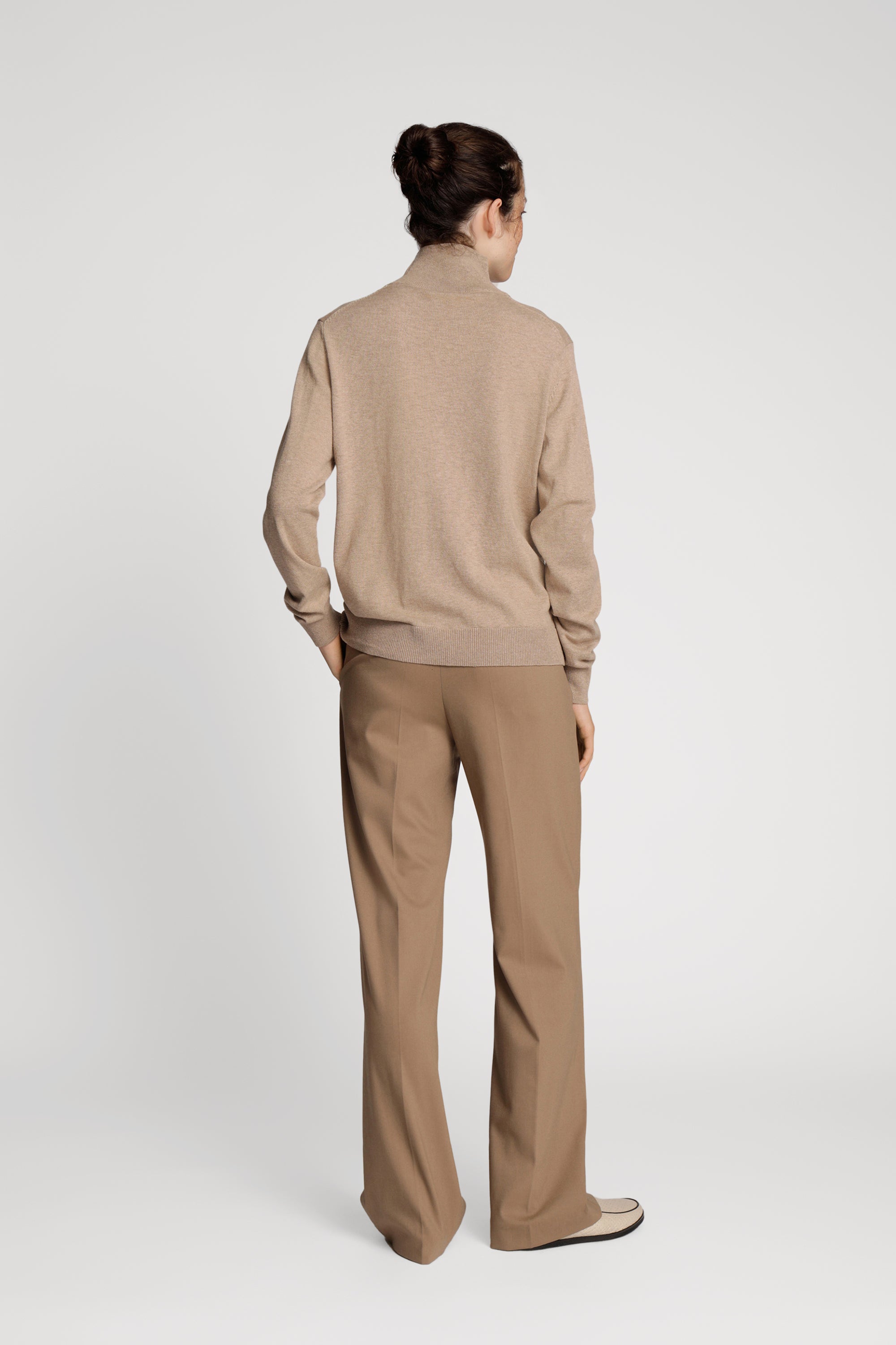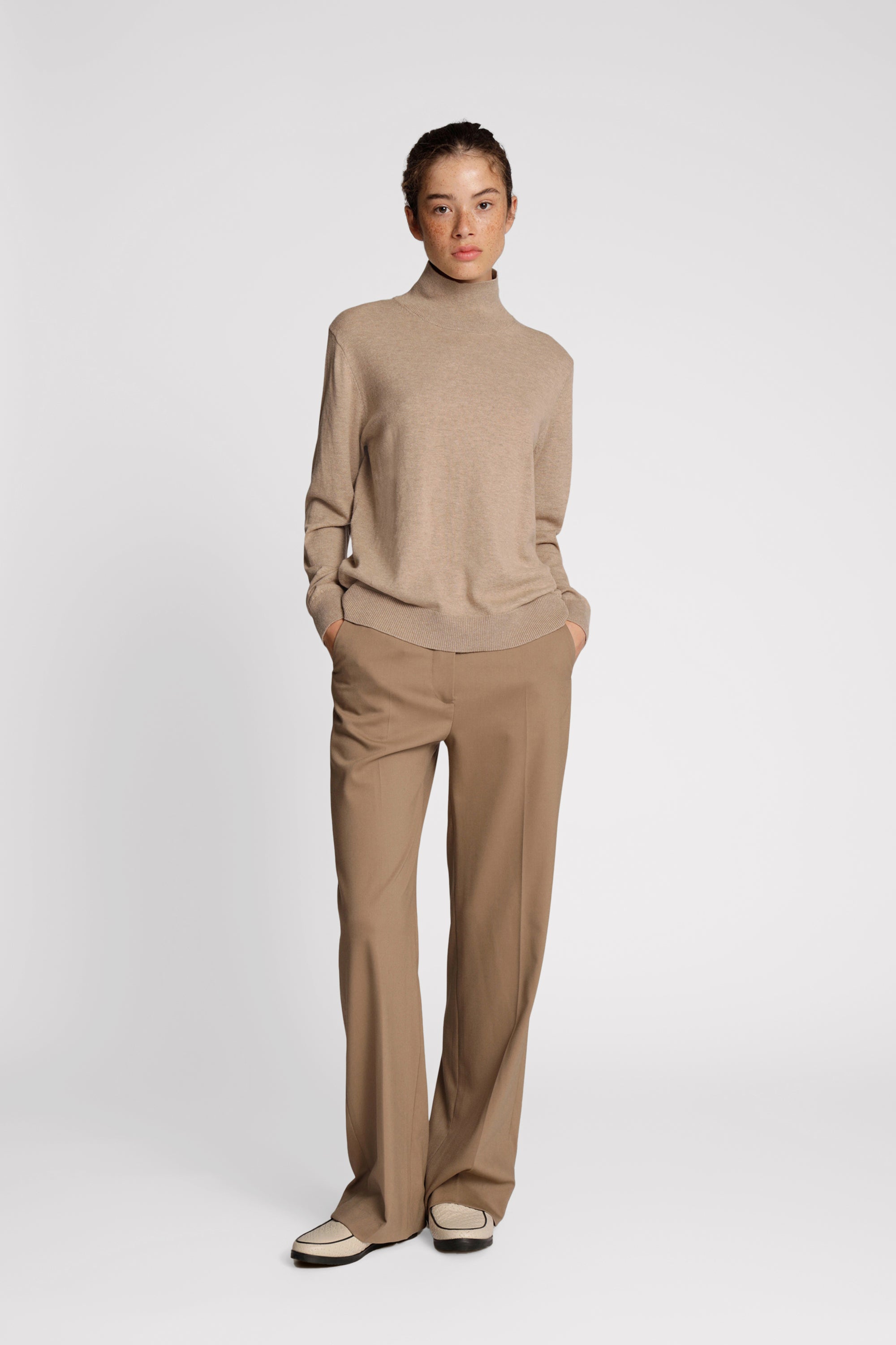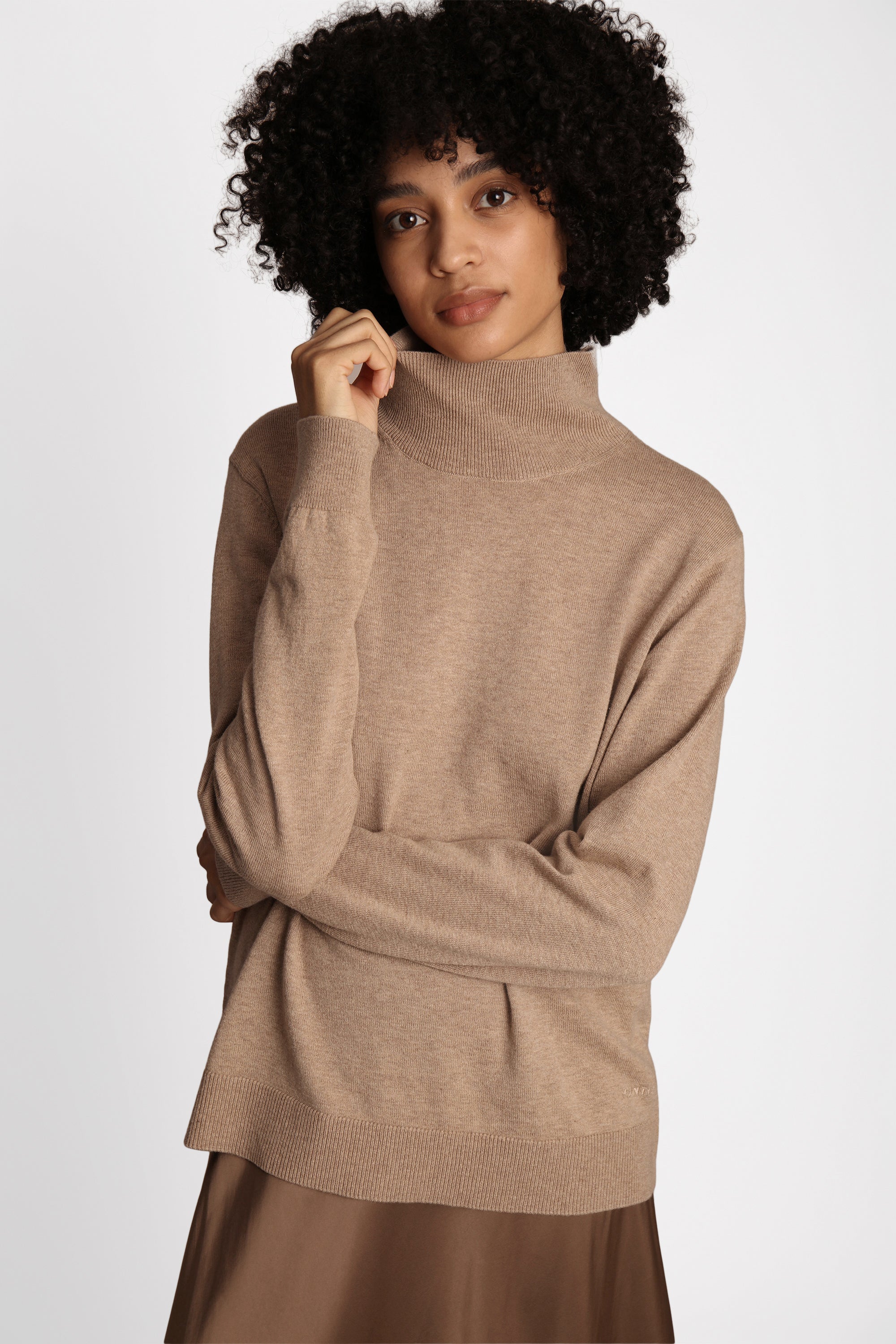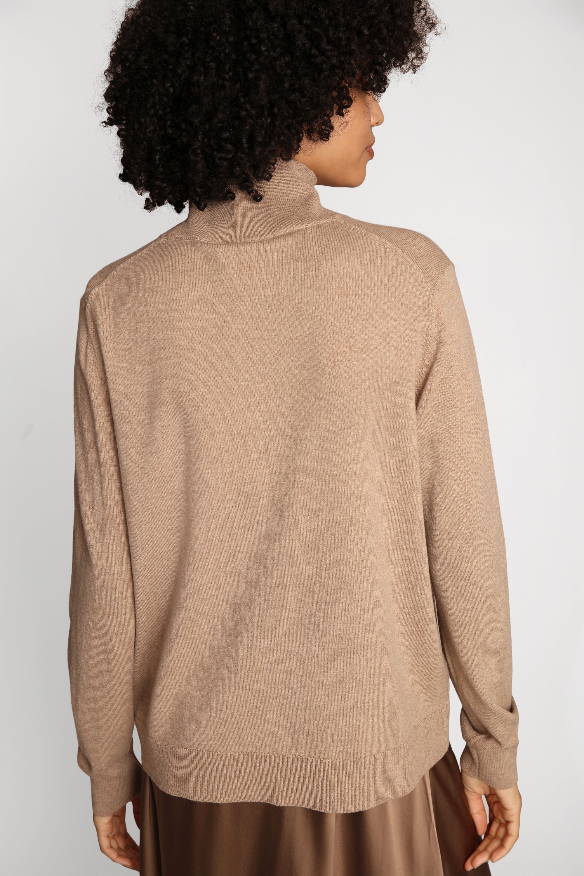 Klassiek lichtgewicht breisel uit een zachte merinowolmix. Dit breisel heeft lange mouwen, een t-hals en een elegante rib langs de randen.