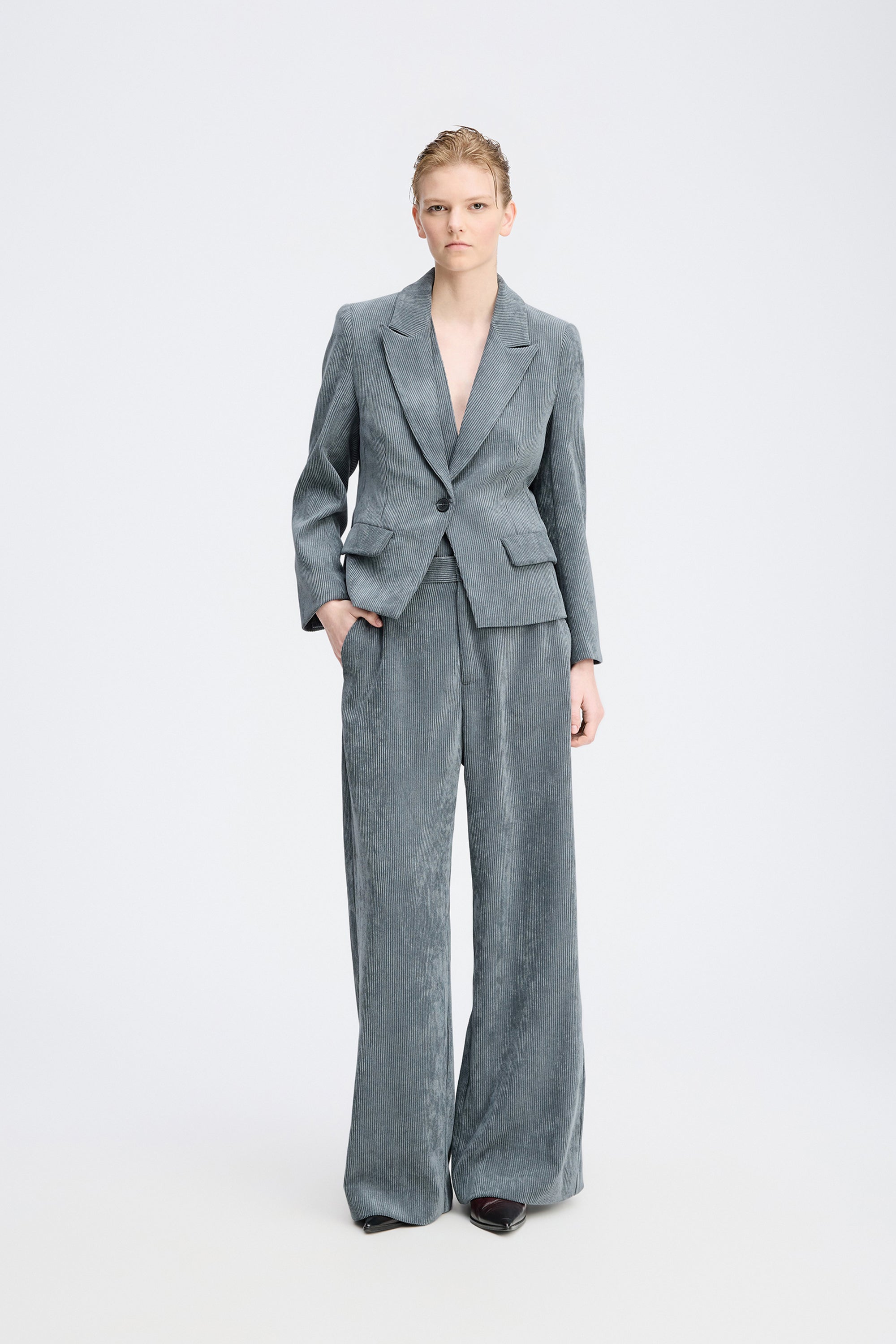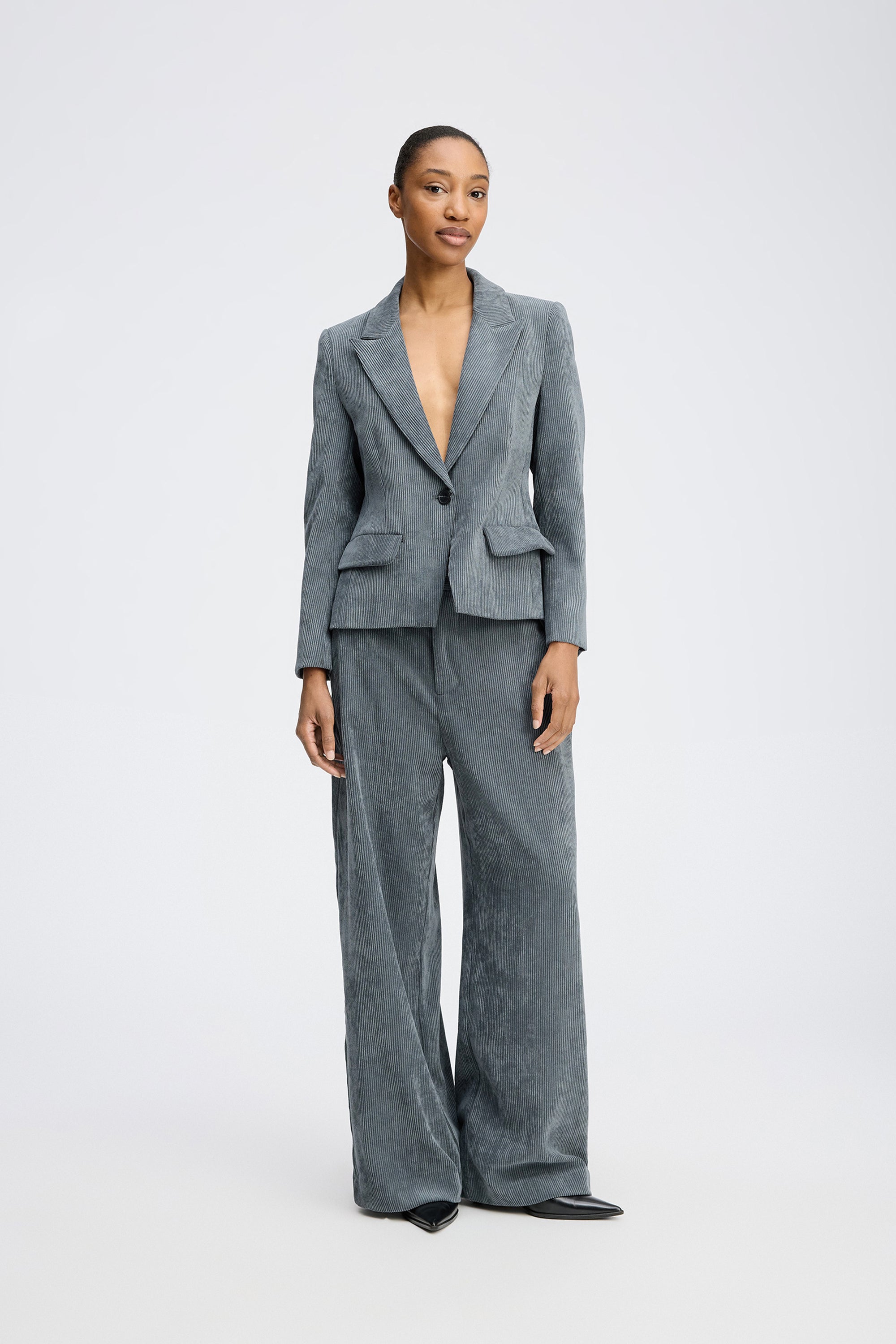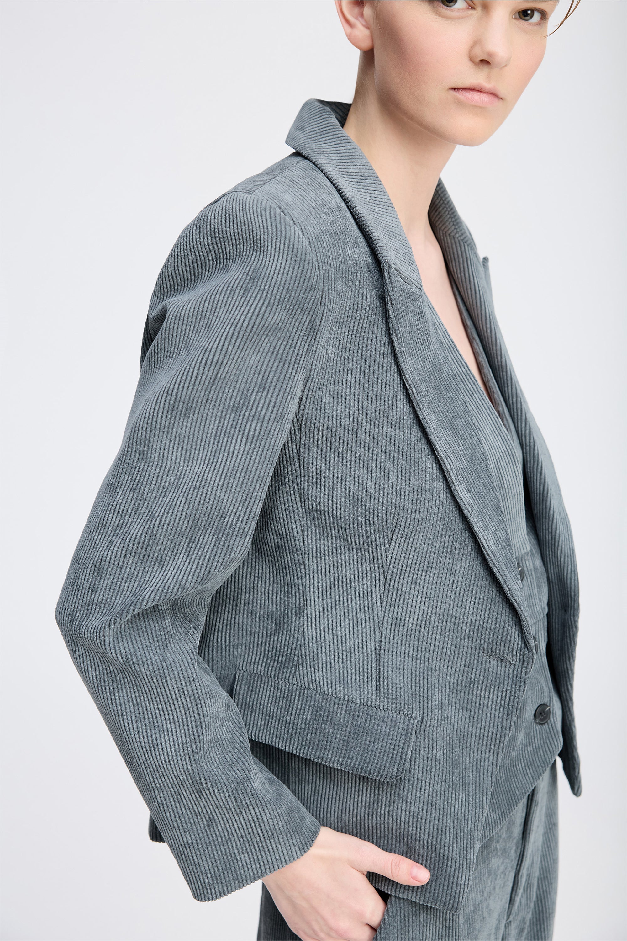 Mooi kort fluwelen colbert met elegante klepzakken aan de voorkant. Dit colbert is ontworpen met een slim fit, rechte schouders, lange mouwen en een knoopsluiting.