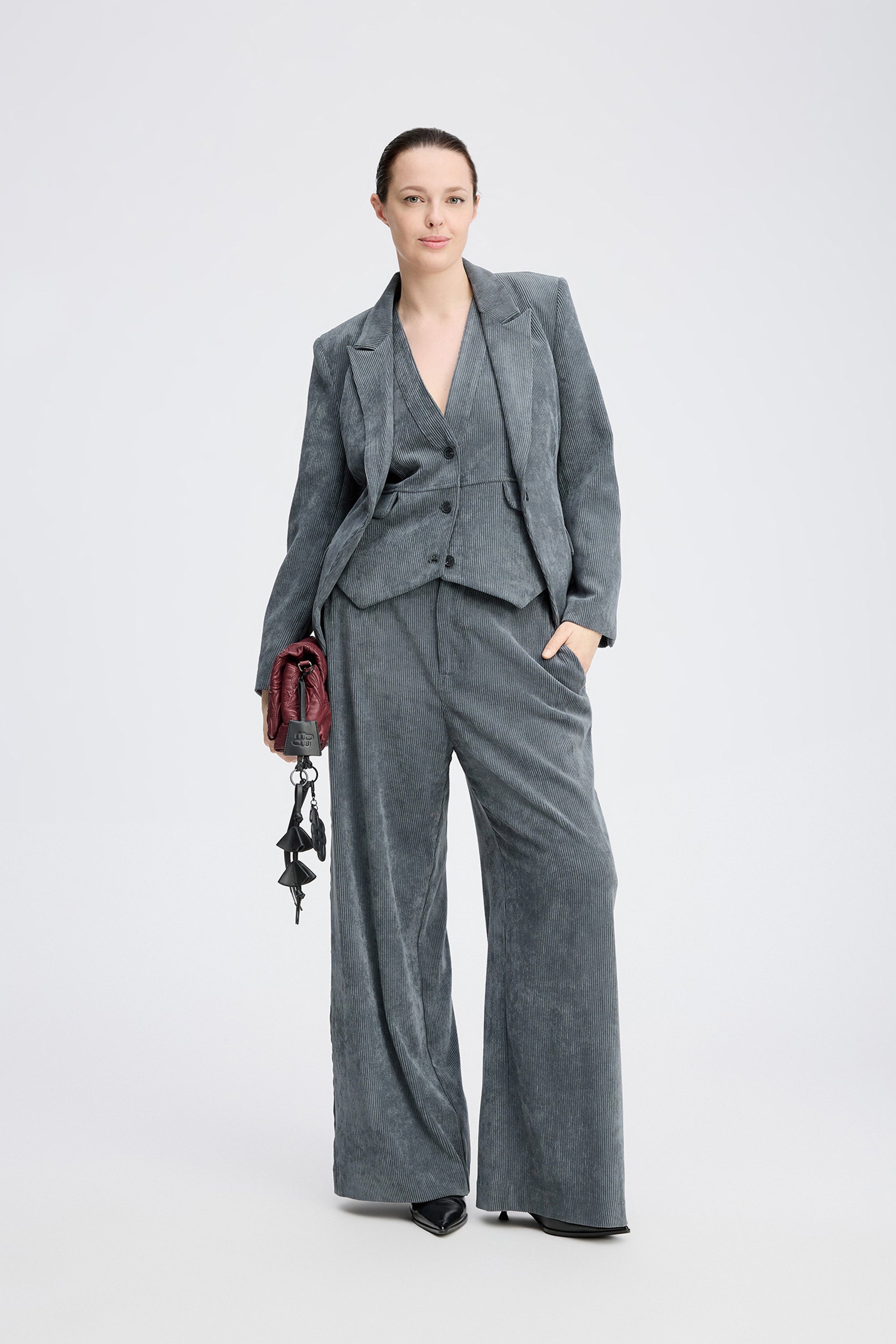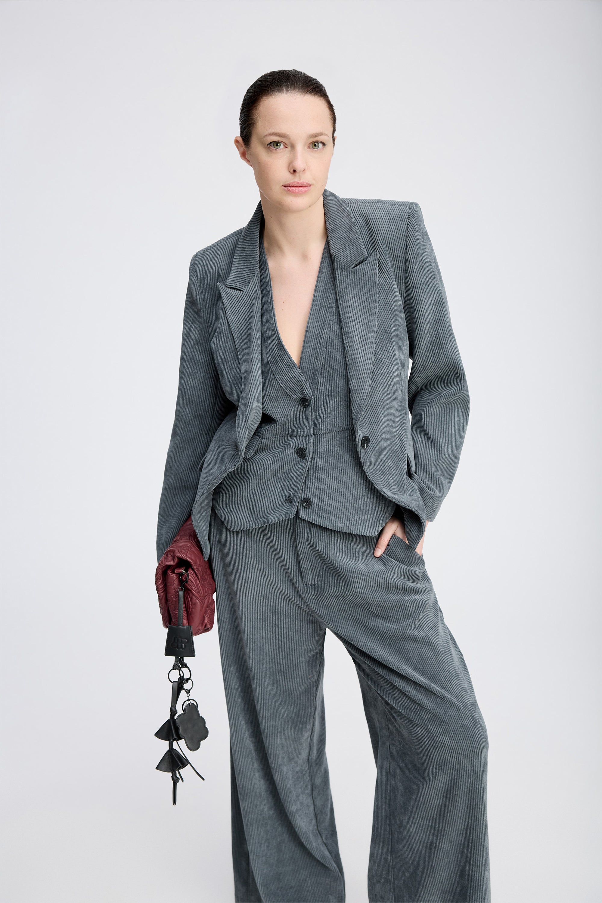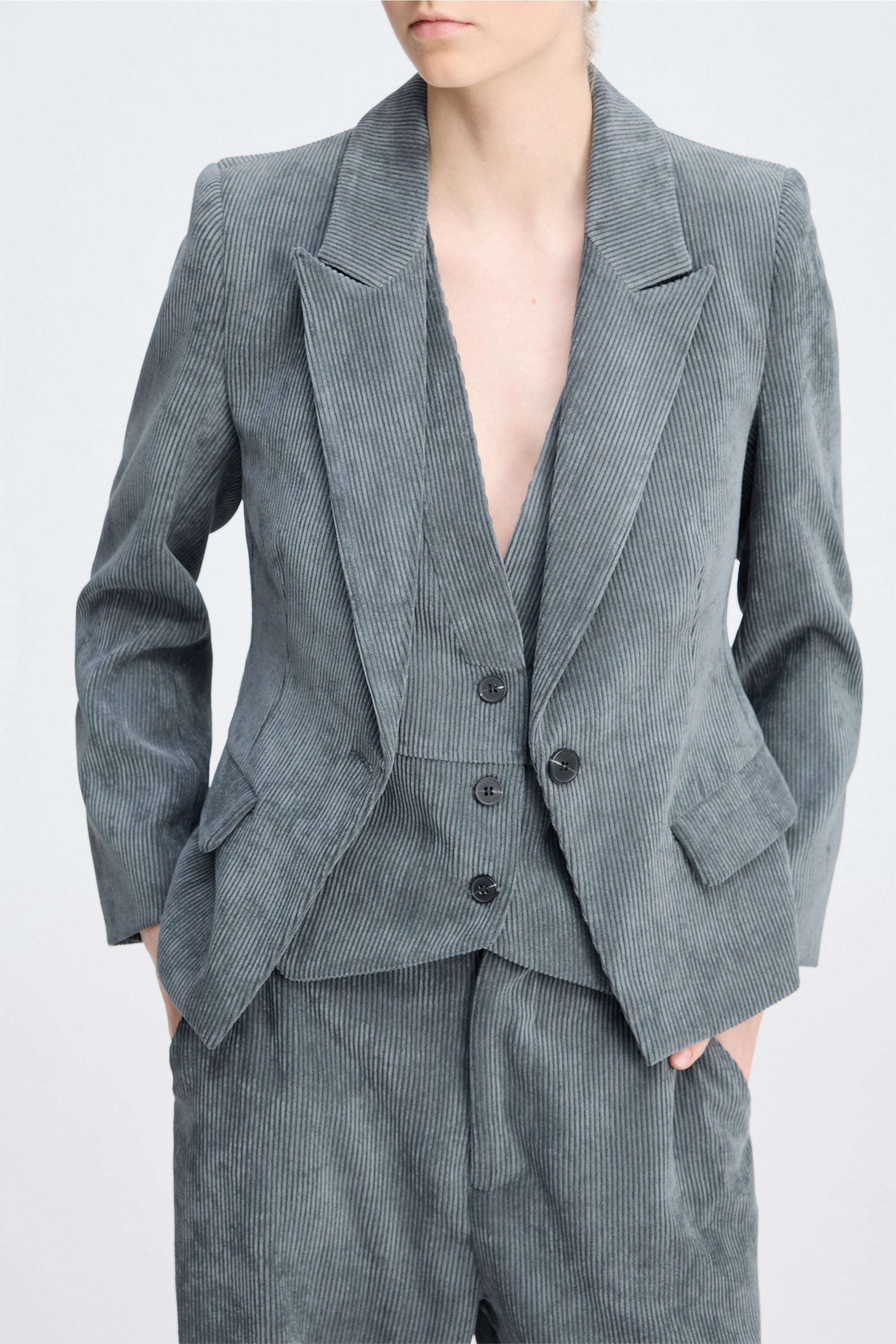 Mooi kort fluwelen colbert met elegante klepzakken aan de voorkant. Dit colbert is ontworpen met een slim fit, rechte schouders, lange mouwen en een knoopsluiting.