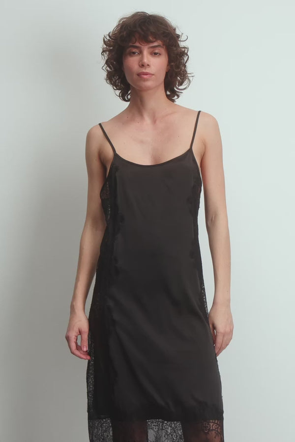 Onderjurk met een prachtige brede kanten afwerking aan de onderkant en langs de zijkant. Deze onderjurk is ontworpen met een elegante split aan de achterkant en dunne, elegante schouderbandjes.