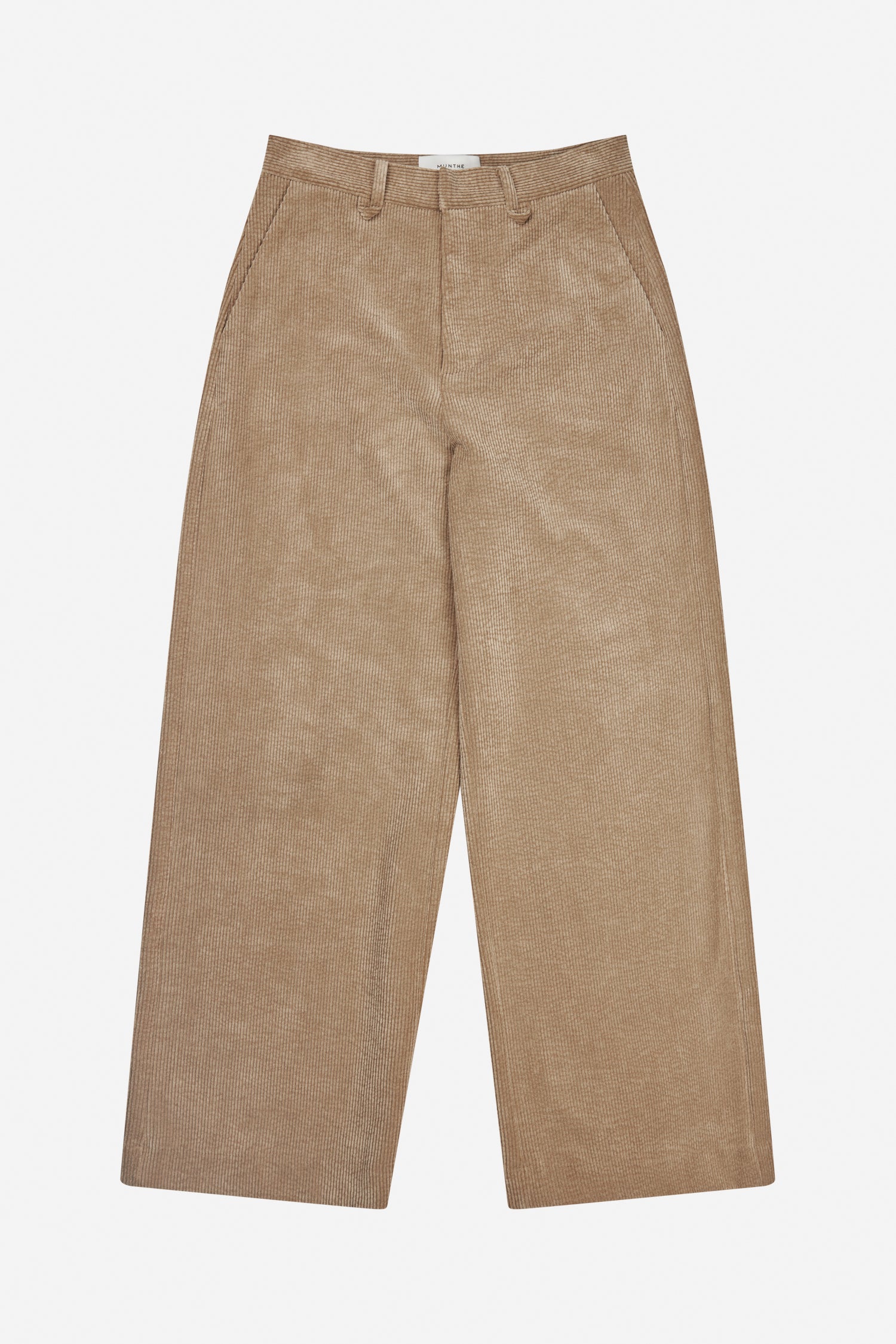 Mooie corduroy broek, ontworpen met elegante details zoals wijde pijpen, riemlussen en zijzakken. De broek sluit aan de voorkant met een rits