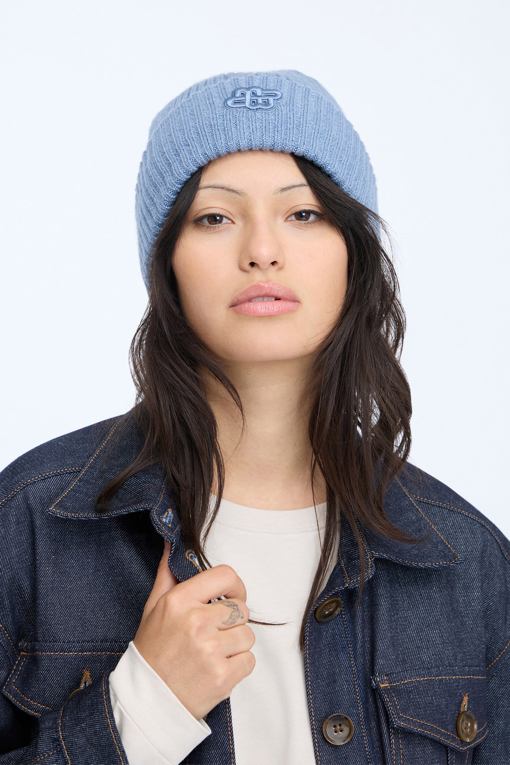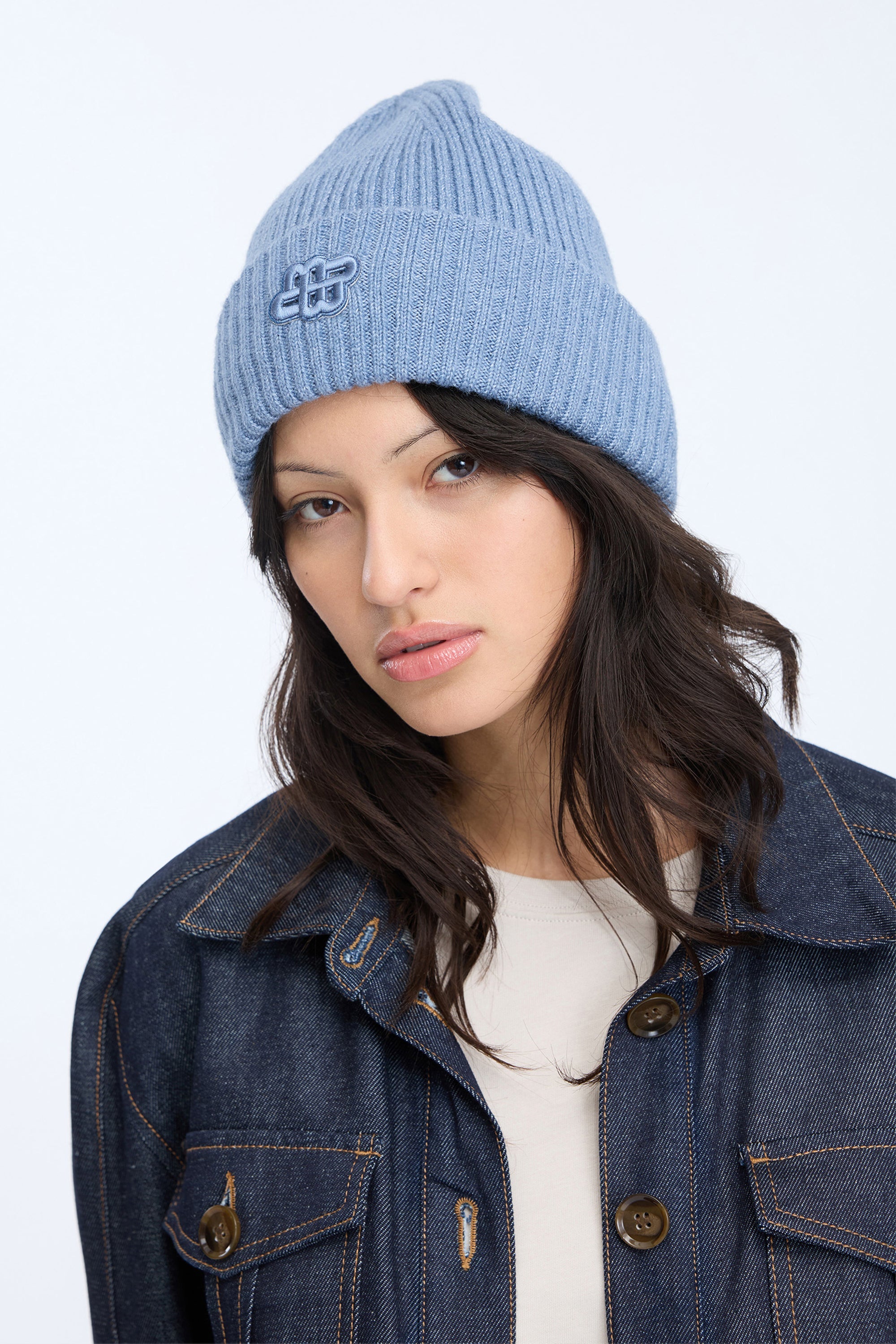 Zachte en warme ribgebreide beanie met omslagzoom en tone-on-tone geborduurd logo.