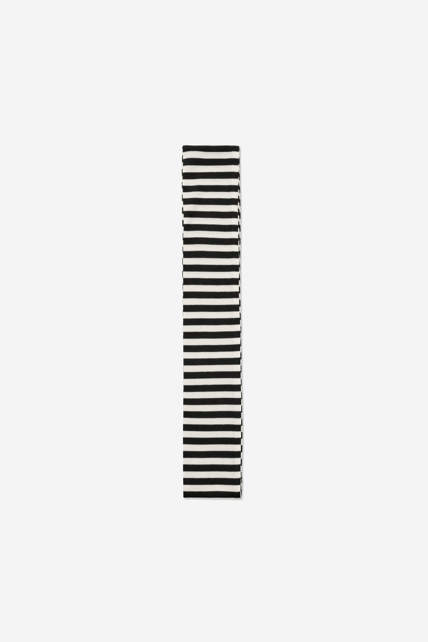Een elegante, lange en smalle sjaal met mooie contrasterende strepen.