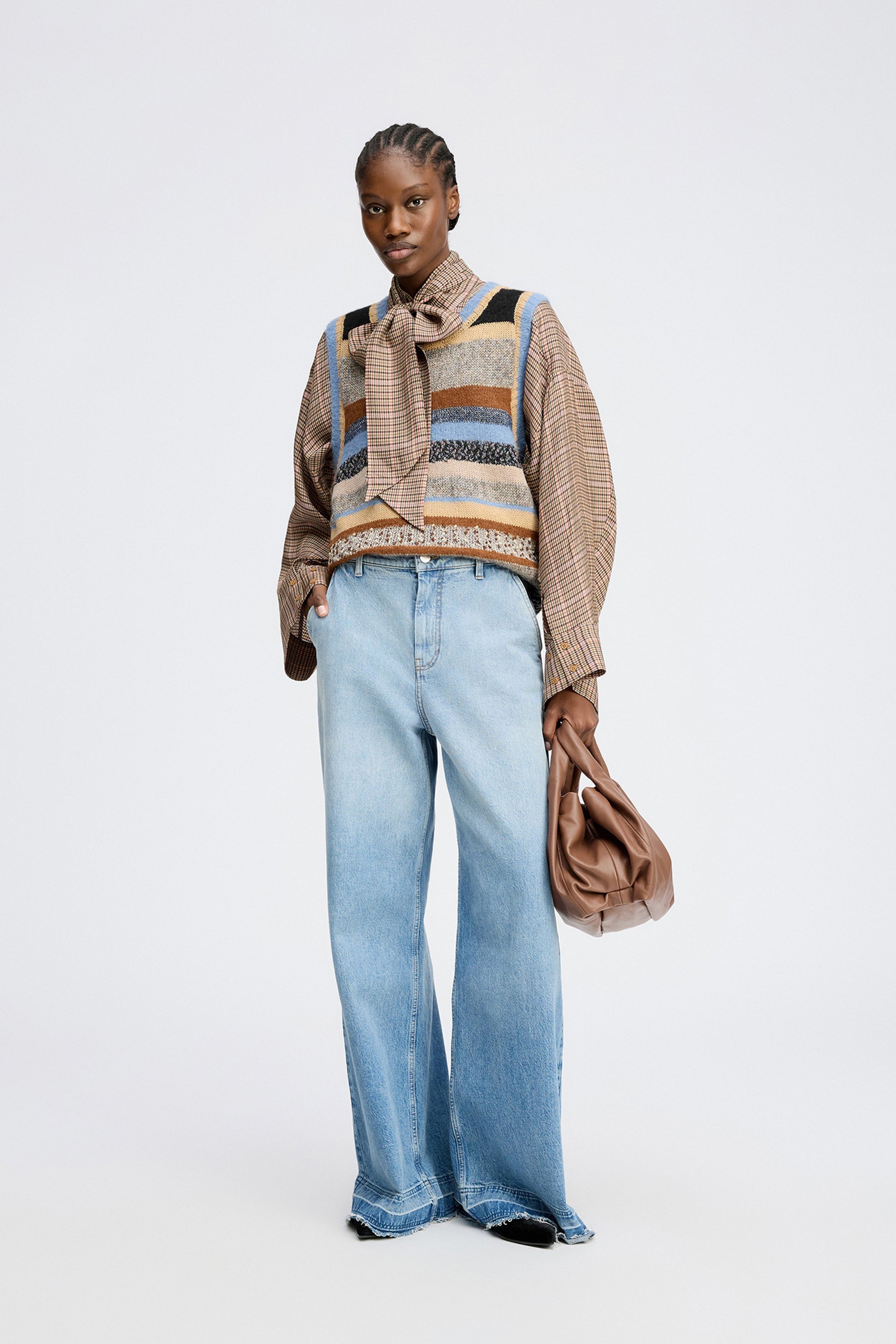 Het model is 178 cm lang en draagt maat 36.