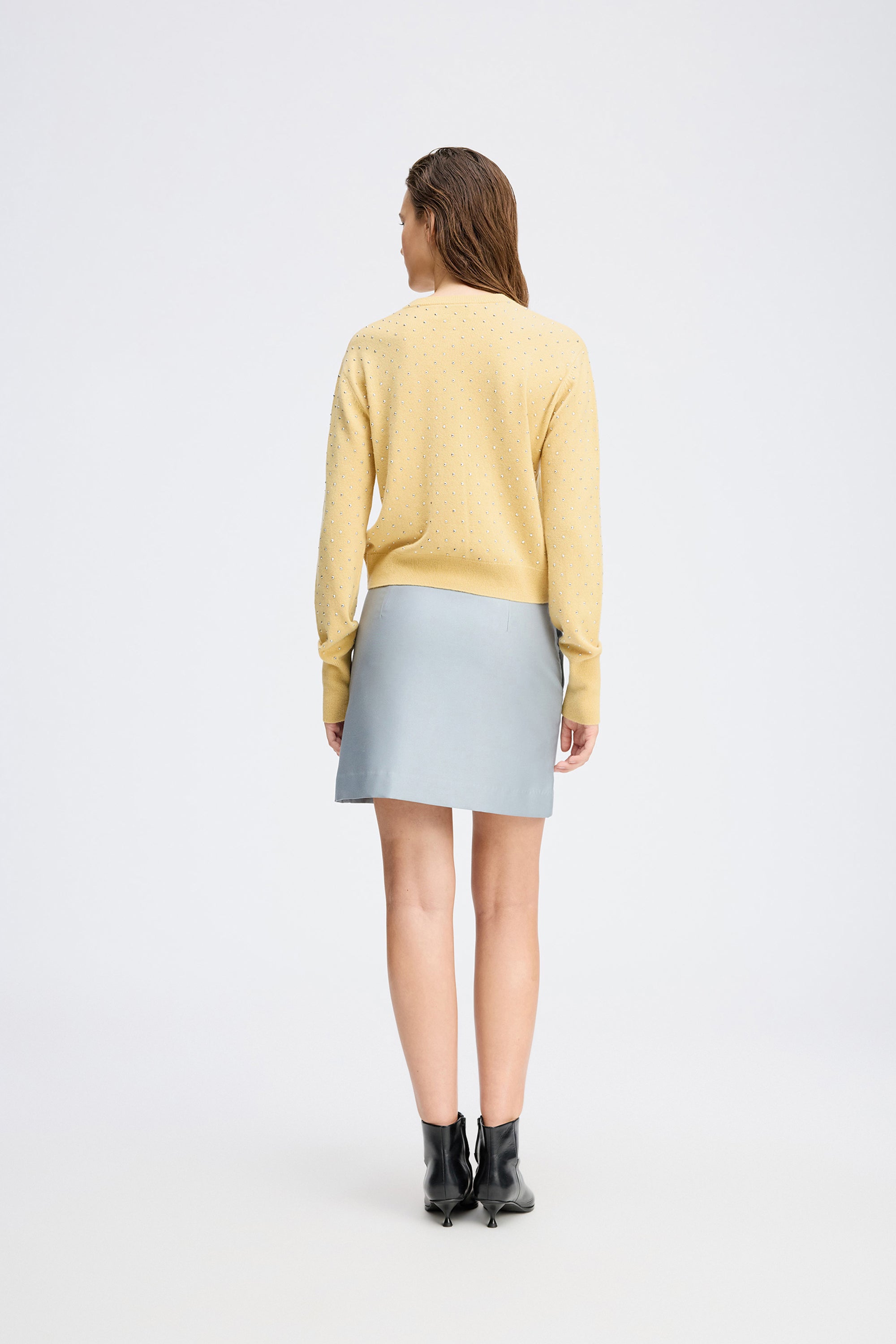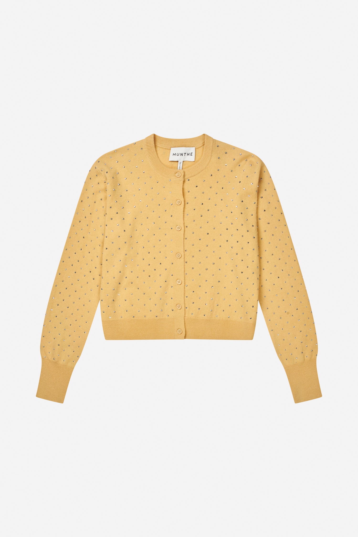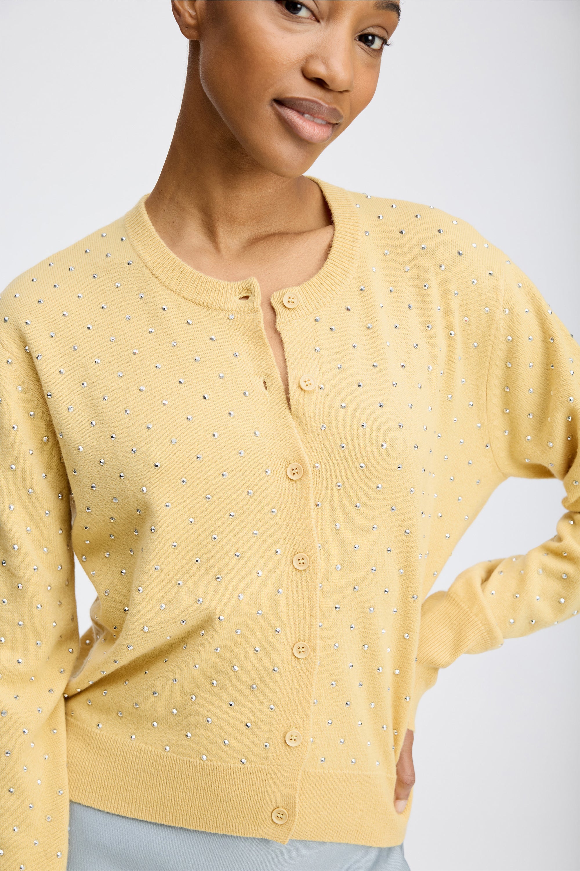 Prachtige, zachte cardigan met elegante zilverkleurige studs. De cardigan heeft een klassieke ronde hals, lange mouwen en een knoopsluiting aan de voorkant.