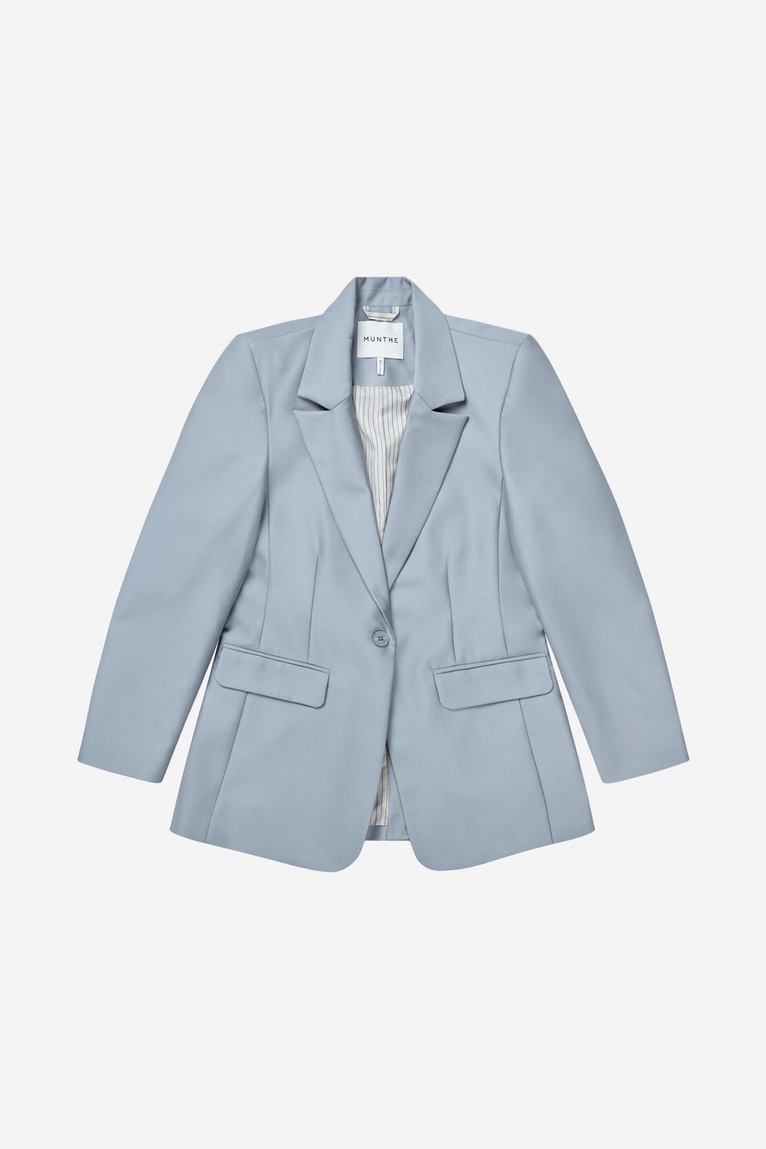 Elegante blazer van prachtige, glad geweven stof. Ontworpen met een klassieke reverskraag, enkele knoopsluiting en klepzakken aan de voorkant. De licht getailleerde pasvorm zorgt voor een verfijnde en tijdloze uitstraling.