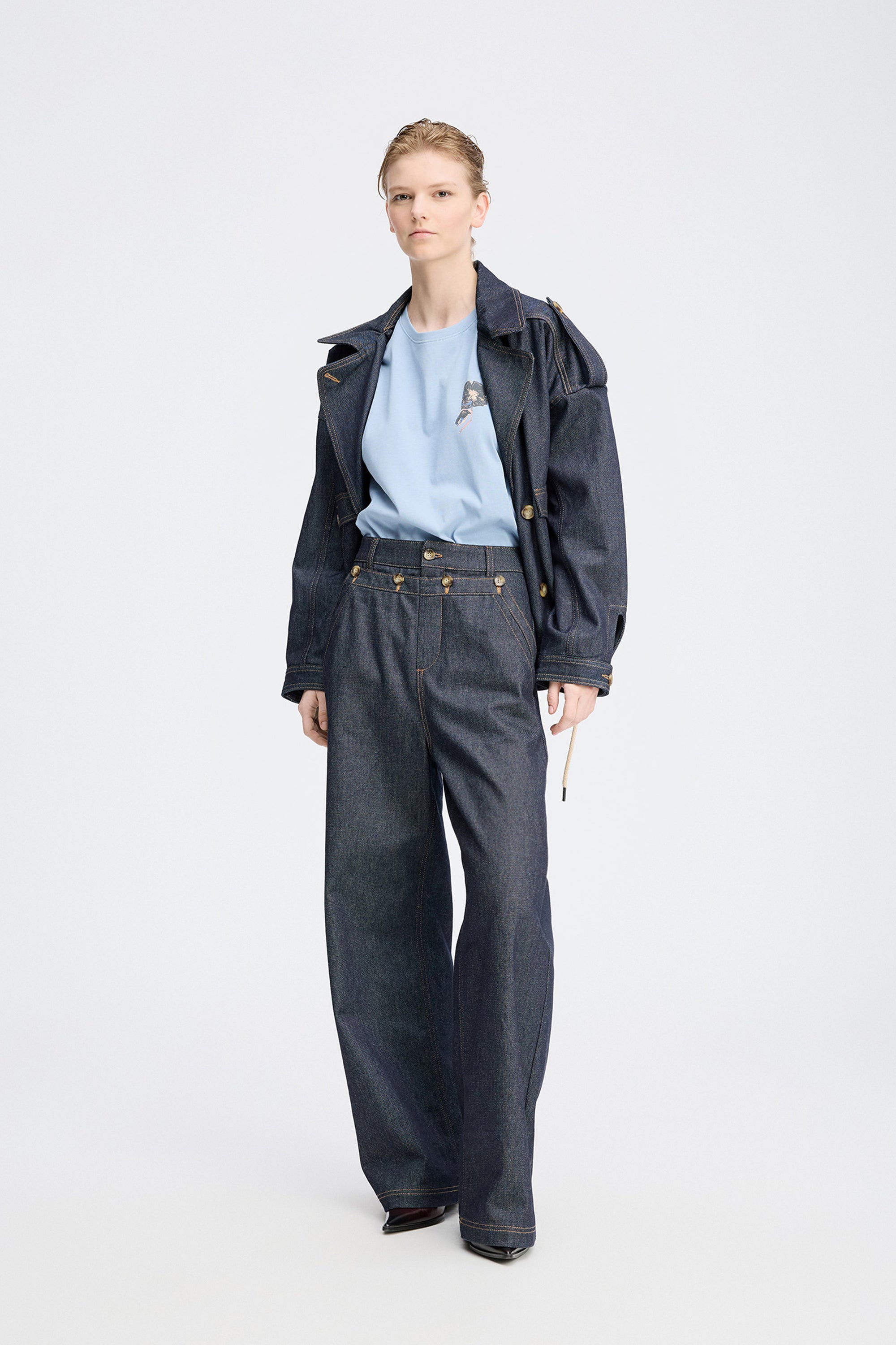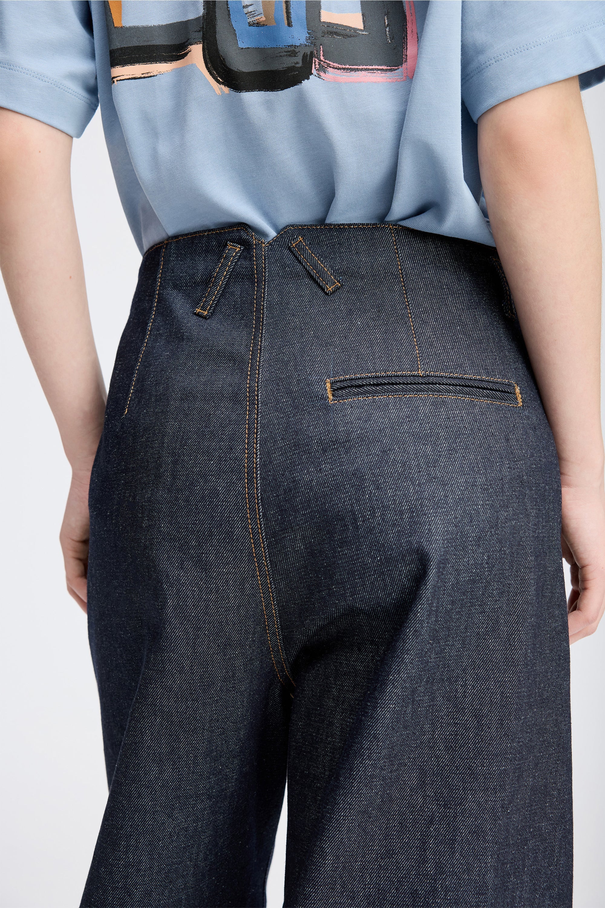 Om je raw denim er mooi uit te laten zien, raden we aan om voorzichtig te wassen met milde instellingen en wasmiddelen. Vanwege de aard van raw denim kan de kleur bij dragen en wassen op natuurlijke wijze vervagen—dit is normaal en draagt bij aan de unieke uitstraling van je denim na verloop van tijd.