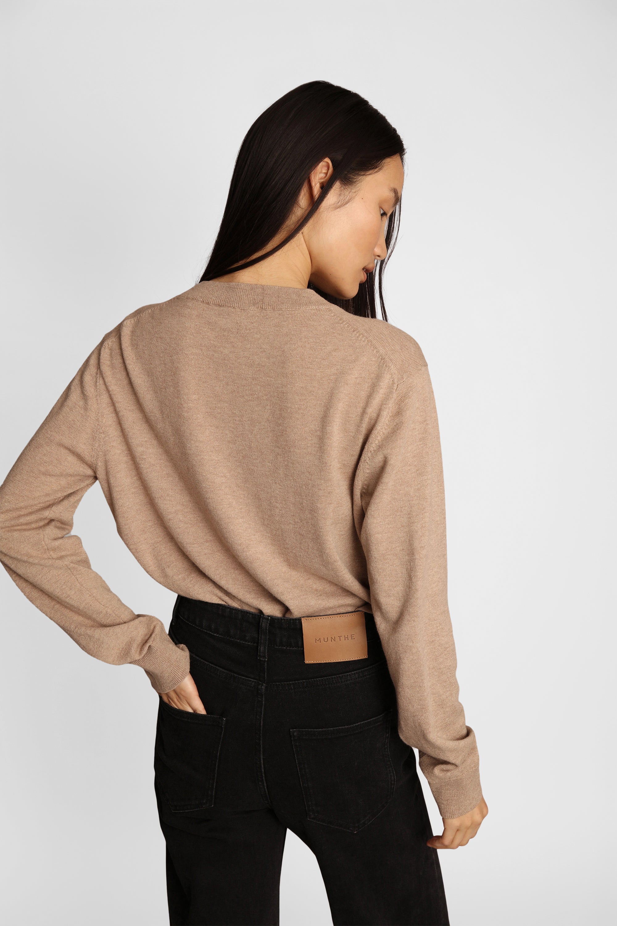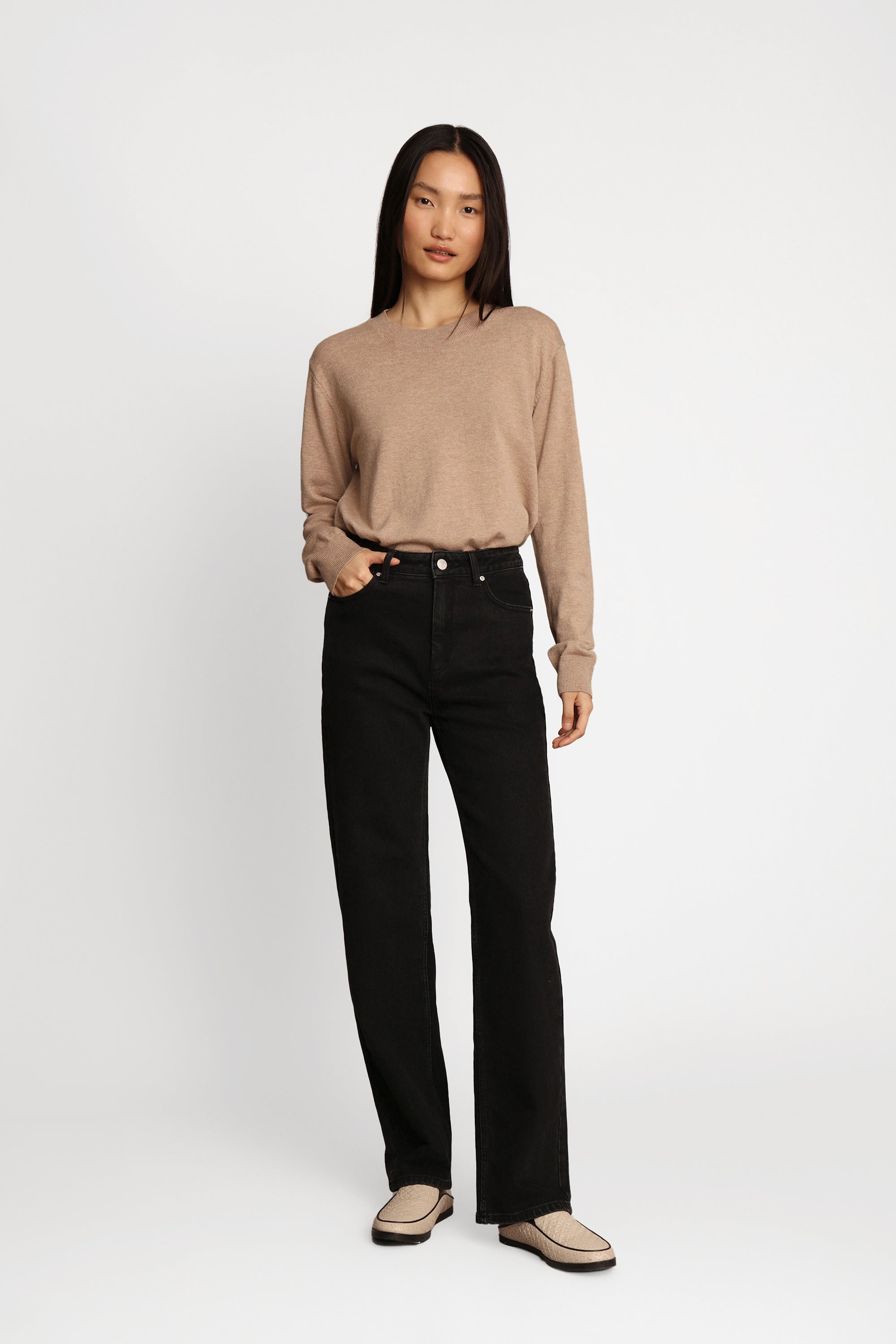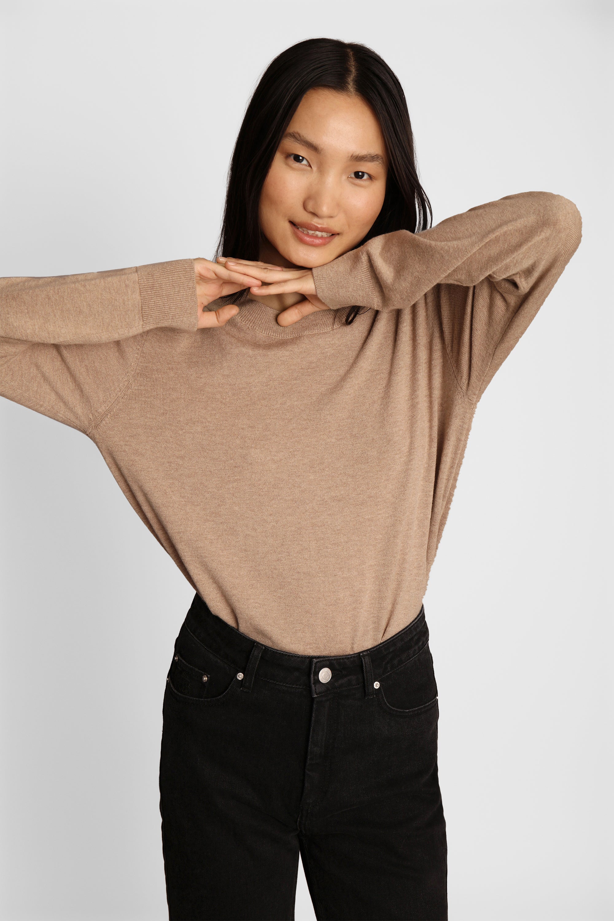 Klassiek lichtgewicht breisel uit een zachte merinowolmix. Het breisel heeft lange mouwen, een ronde hals en een elegante rib langs de randen.